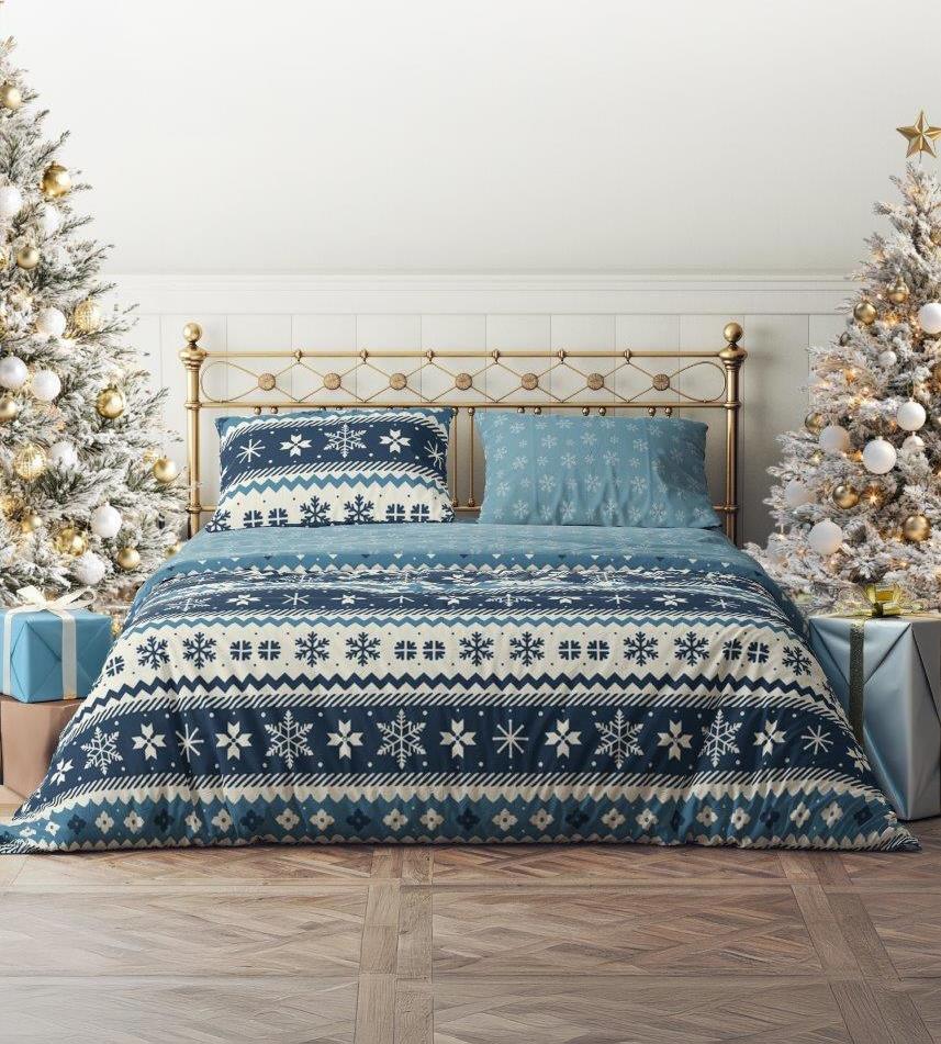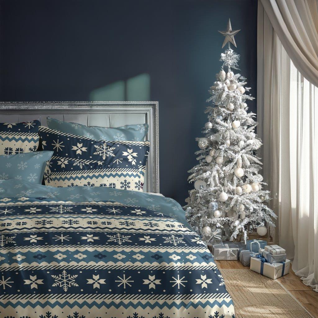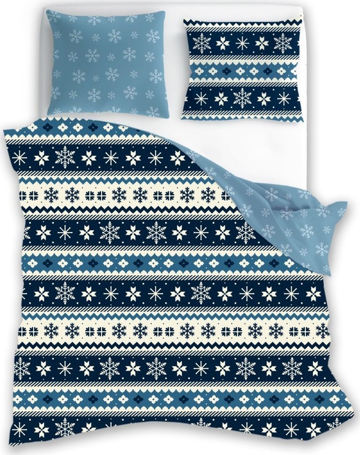Bavlněné povlečení MAGIC WINTER Vločky - modré - 160x200 cm