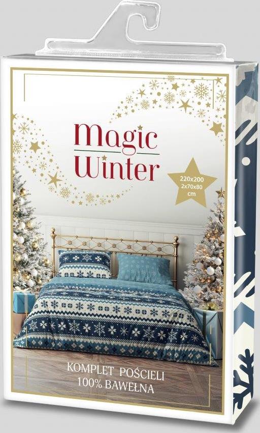 Bavlněné povlečení MAGIC WINTER Vločky - modré - 220x200 cm