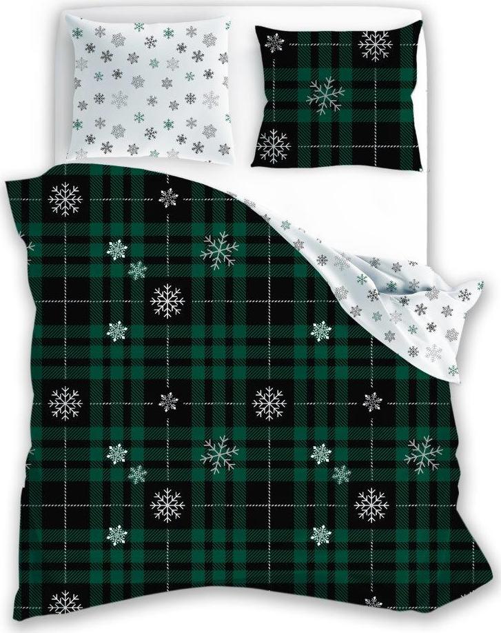 Bavlněné povlečení NORDIC Vločky - tmavě zelené/bílé - 160x200 cm + 2x 70x80 cm