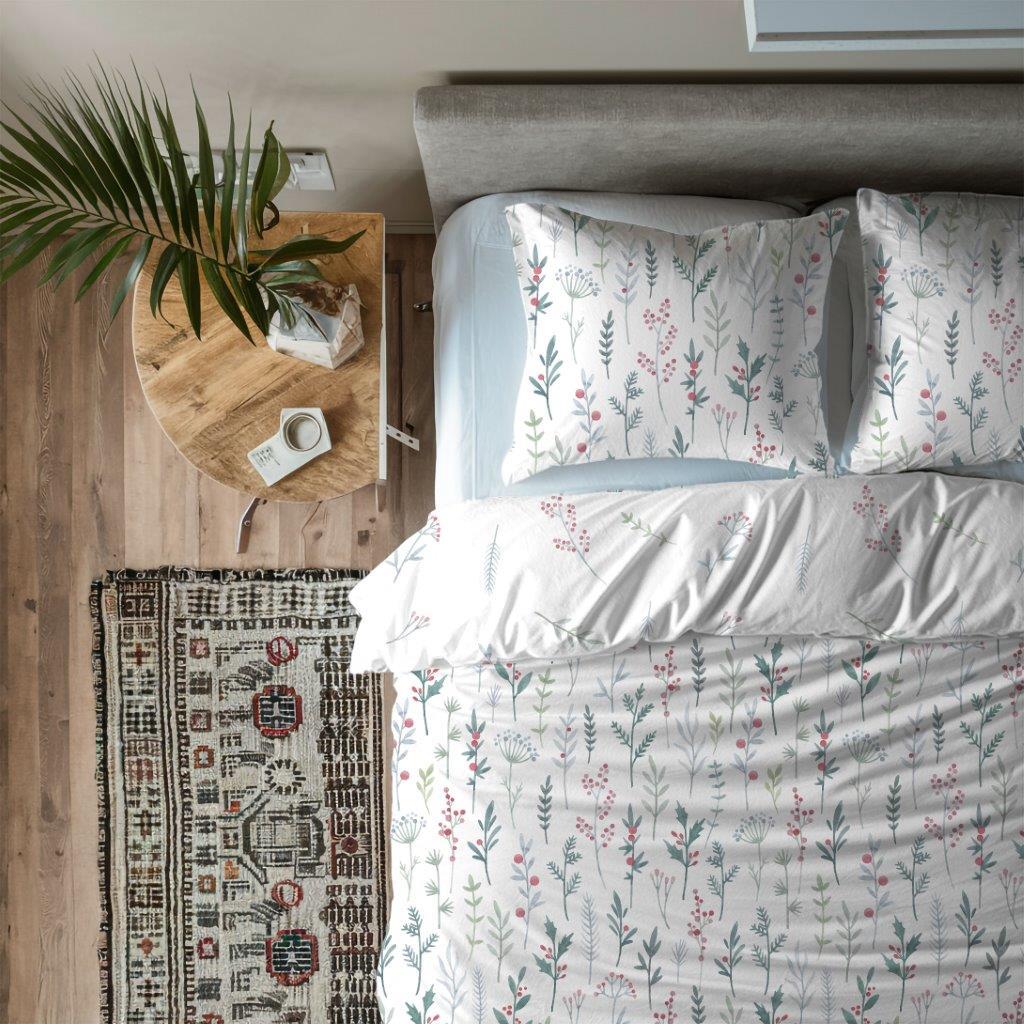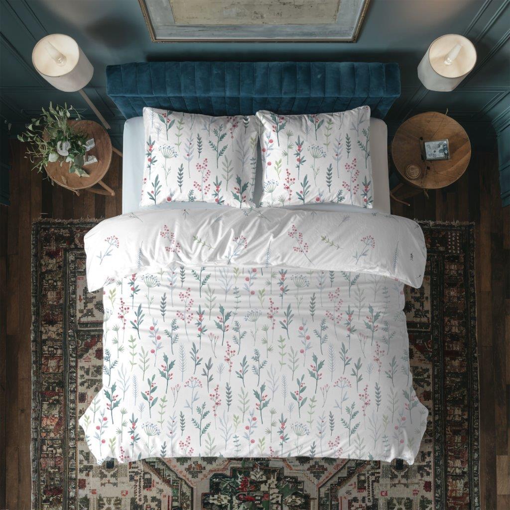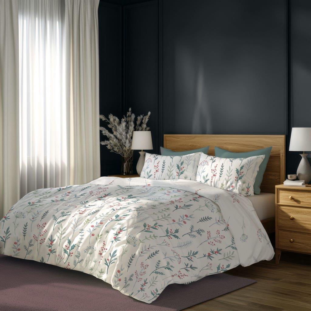 Bavlněné povlečení PRIMAVERA Byliny - bílé - 220x200 cm