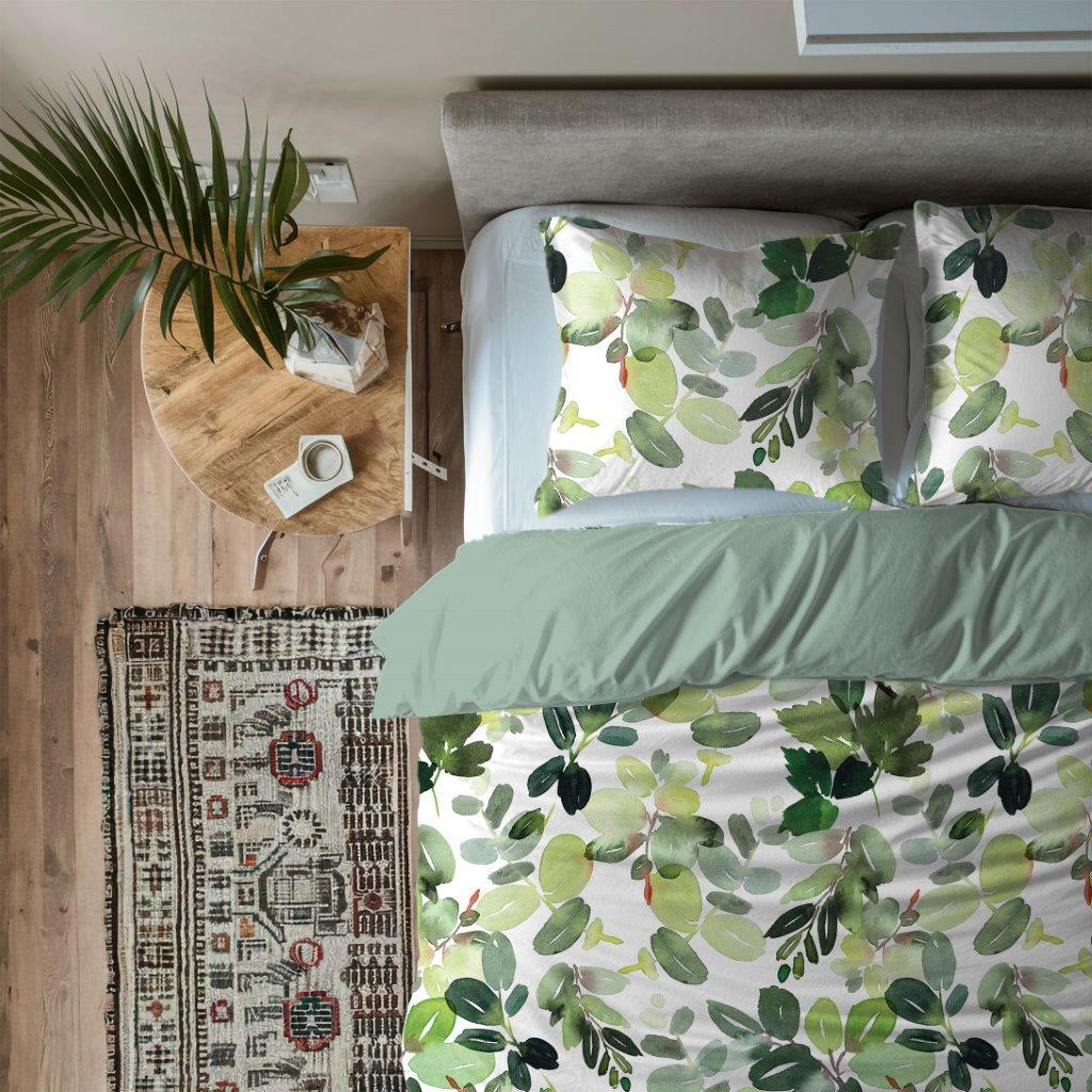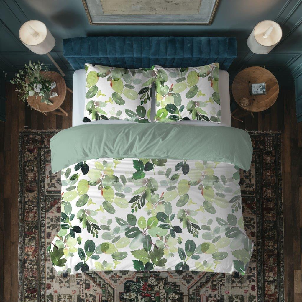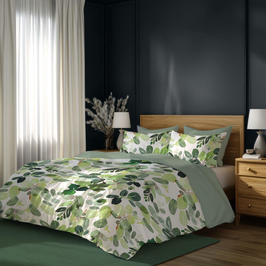 Bavlněné povlečení PRIMAVERA Listy - bílé/zelené - 160x200 cm