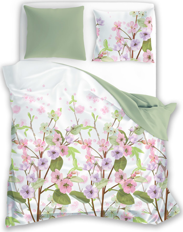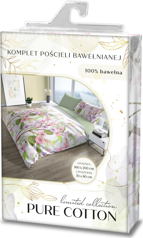 Bavlněné povlečení PURE COTTON bílé/zelené - 160x200 cm