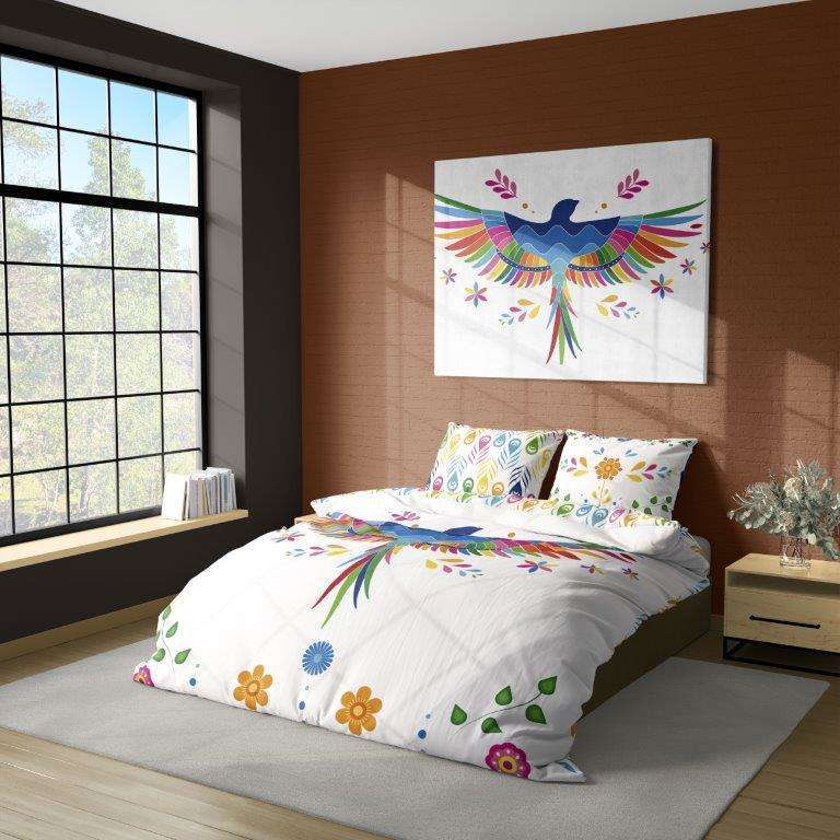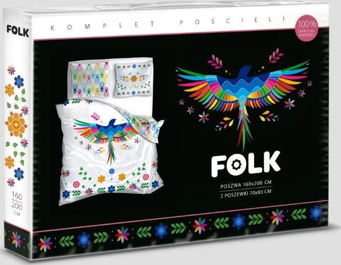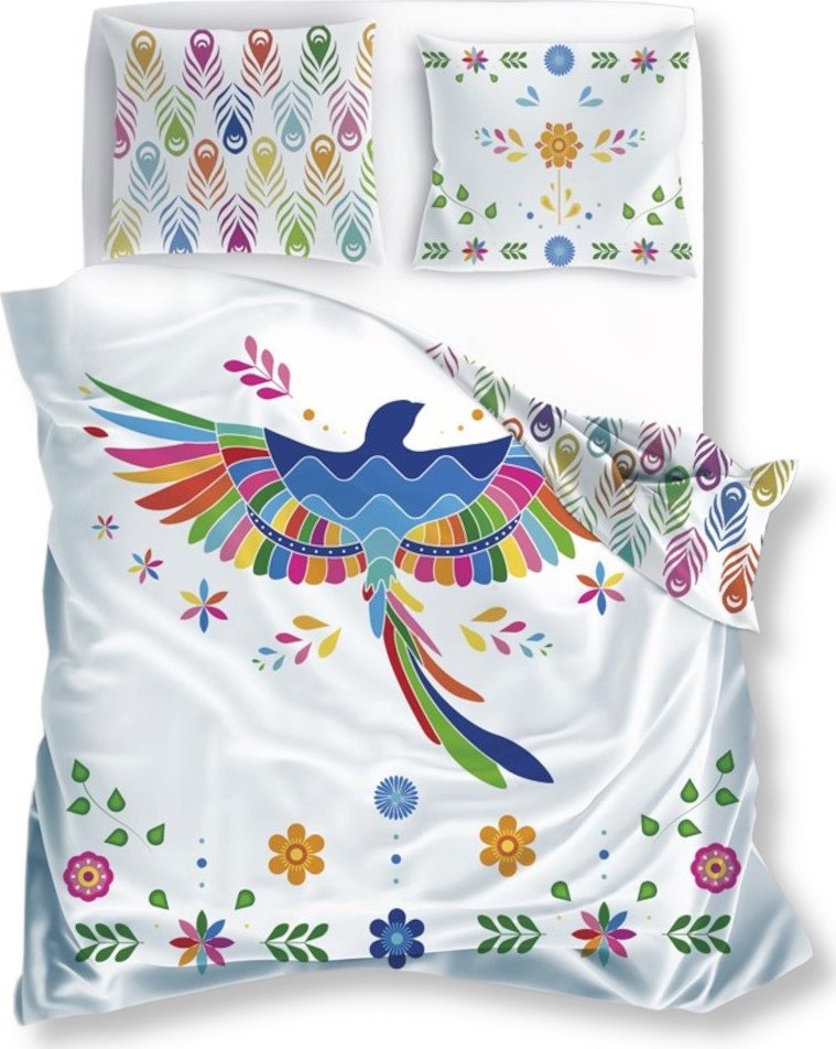 Bavlněné povlečení Renforcé FOLK Duhoví ptáčci - bílé/multicolor - 160x200 cm