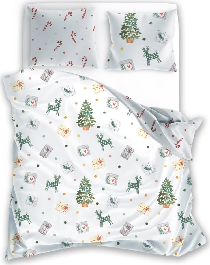 Oboustranné vánoční povlečení se zimním motivem vnese do vašeho interiéru útulnou atmosféru a skvěle doplní zimní styl vaší ložnice, dětského pokoje nebo pokoje pro hosty. Povlečení je vyrobeno z bavlny, díky které je velmi příjemné na dotek a umožní spokojený a pohodlný spánek. Barvy na povlečení zůstavají jasné a syté i po mnoha vypráních. Povlečení má praktické zapínání na zip.
