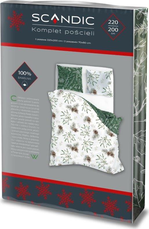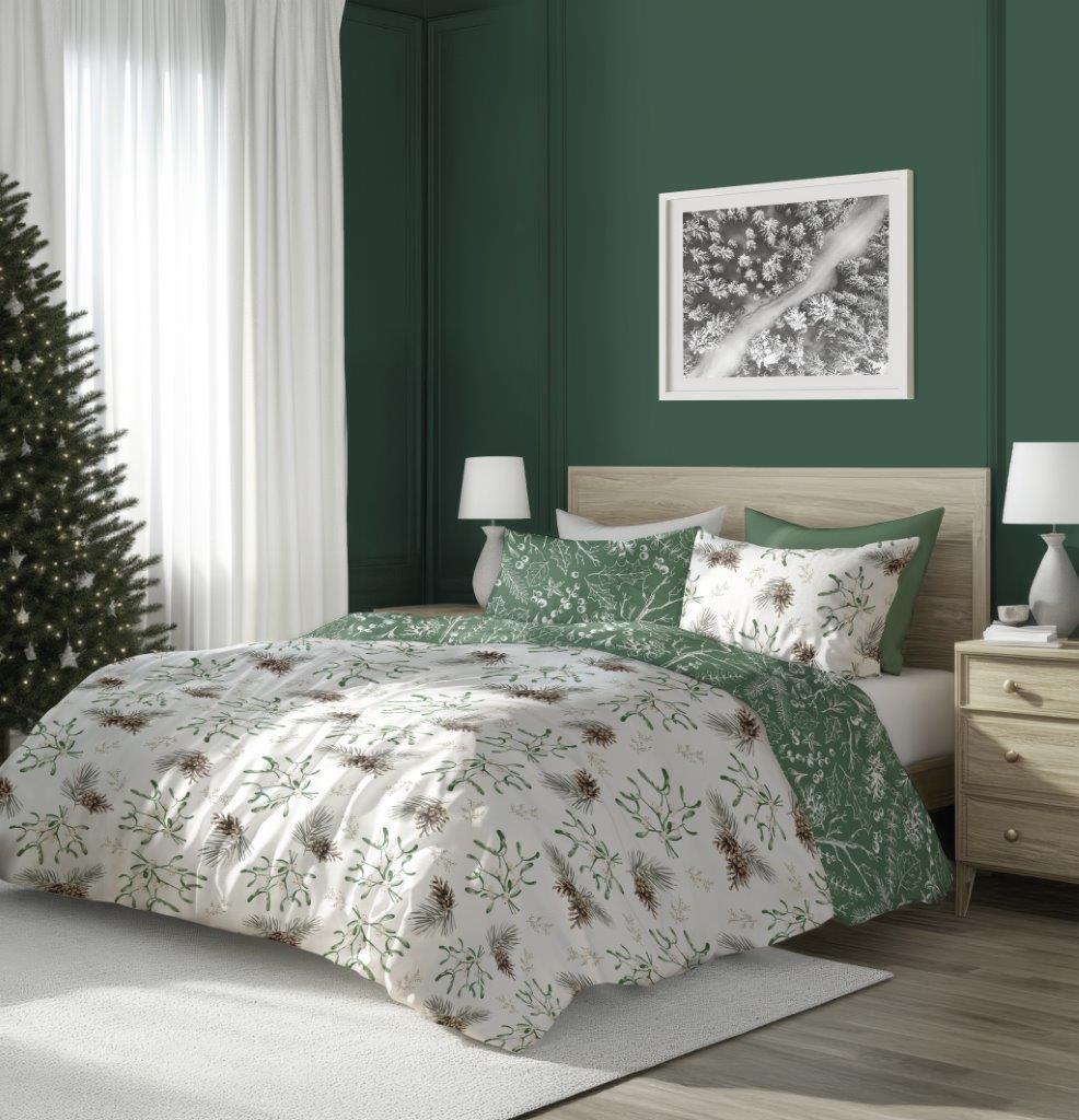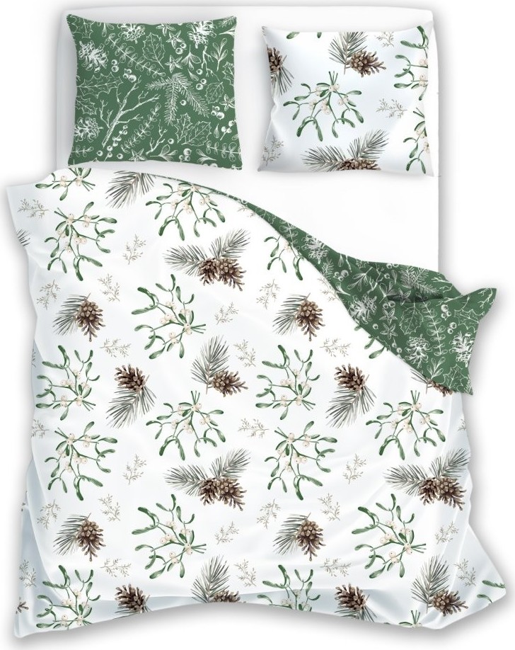 Bavlněné povlečení SCANDIC Jmelí a větvičky - bílé/zelené - 220x200 cm