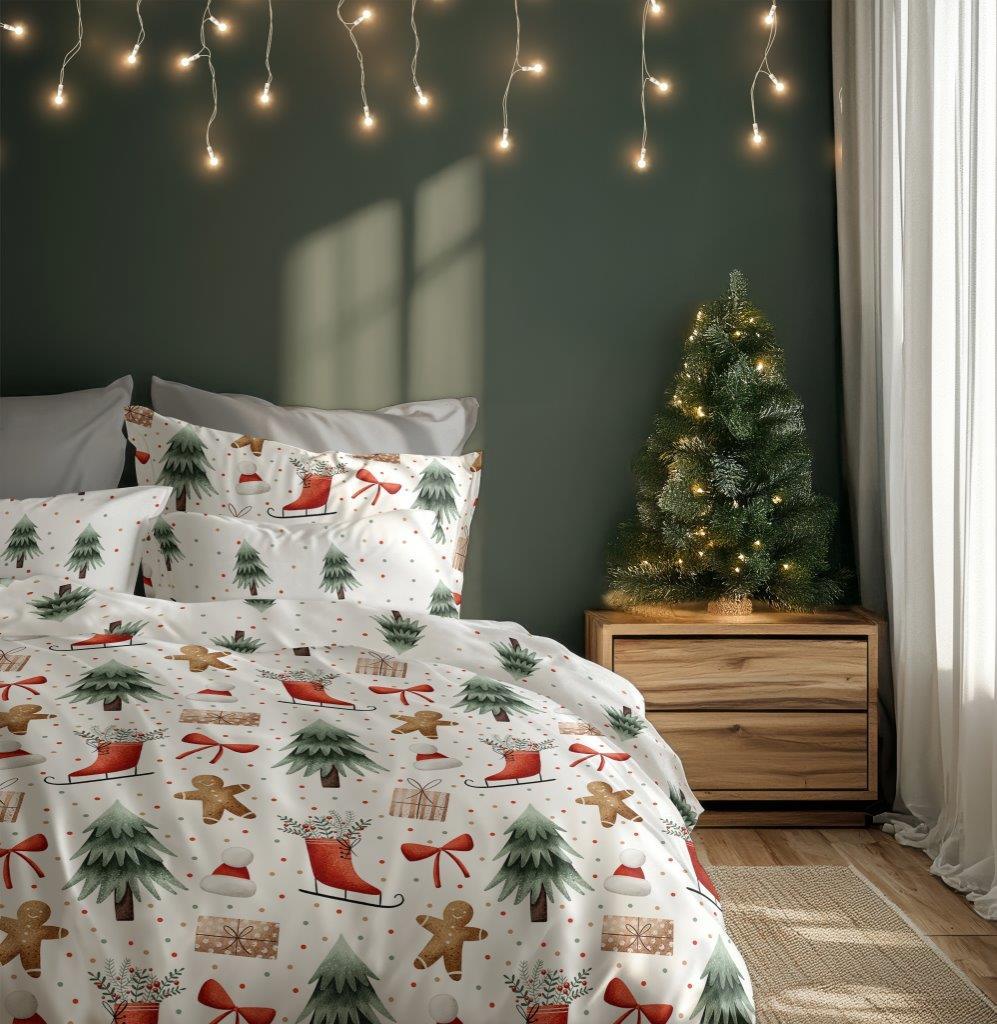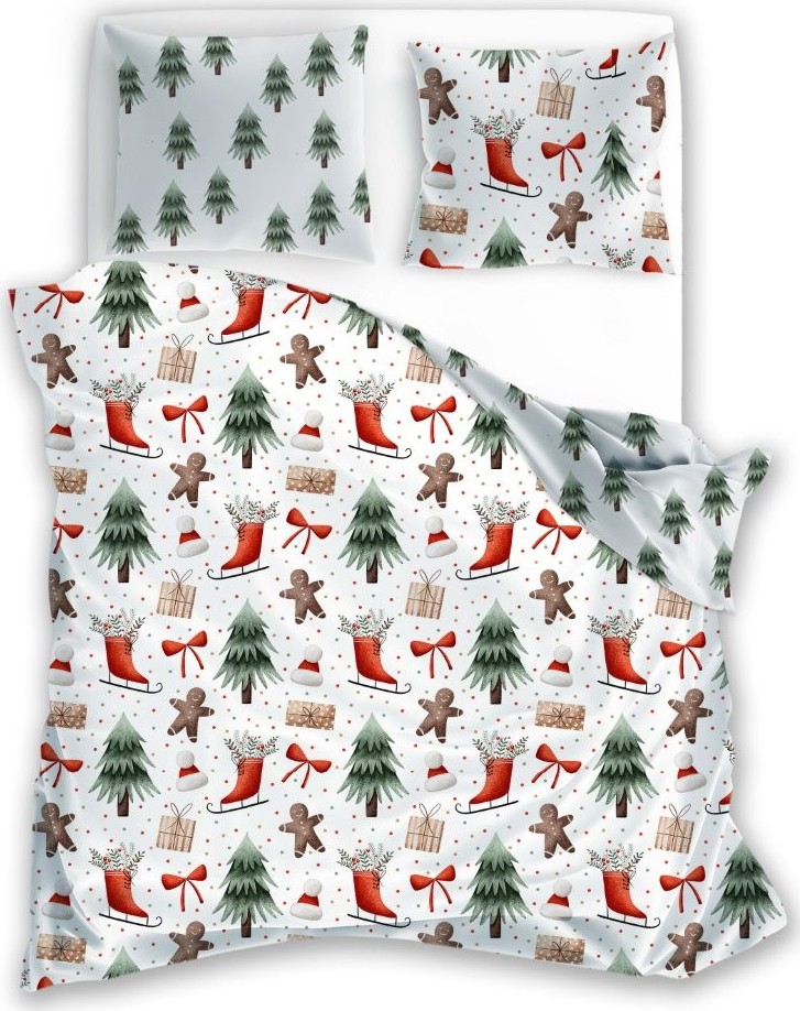 Bavlněné povlečení SCANDIC Perníčky a zimní les - bílé - 220x200 cm