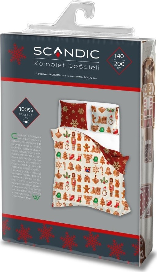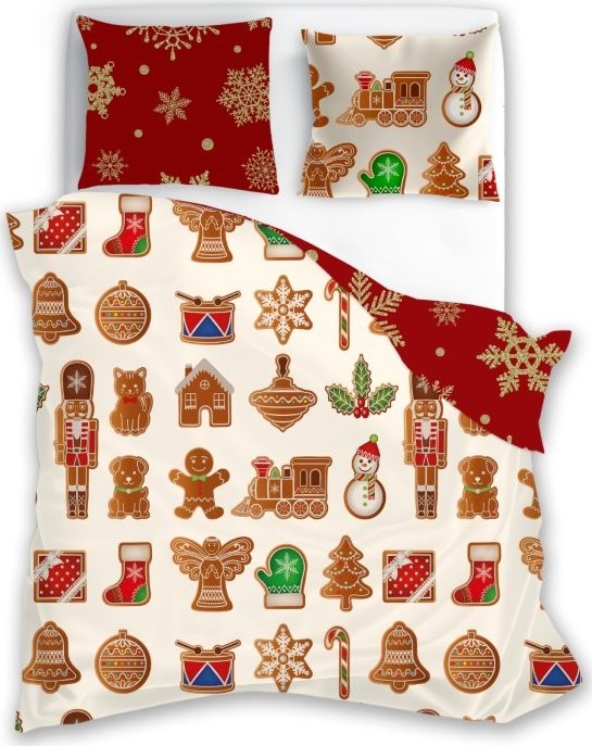 Bavlněné povlečení SCANDIC Perníčky - béžové/červené - 140x200 cm