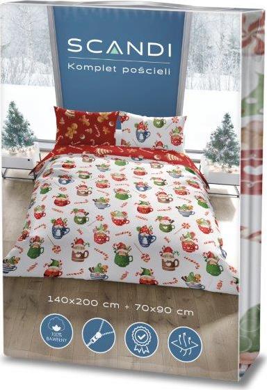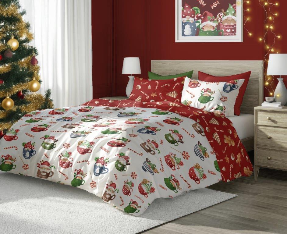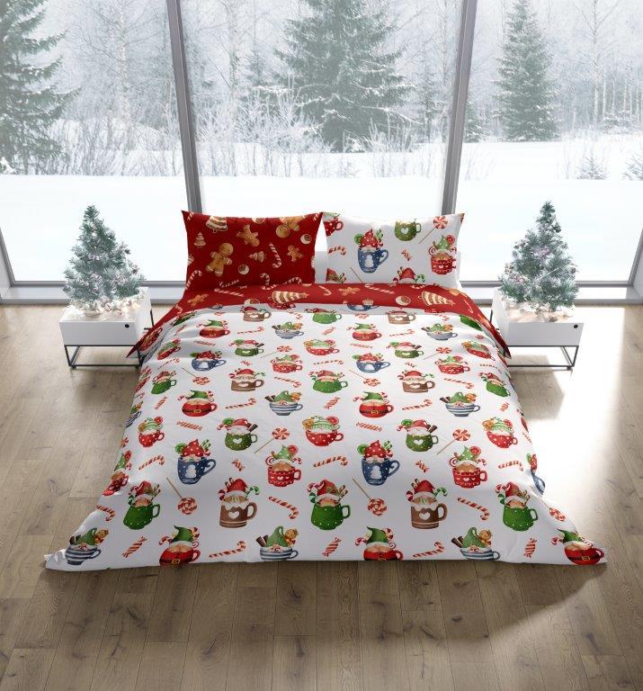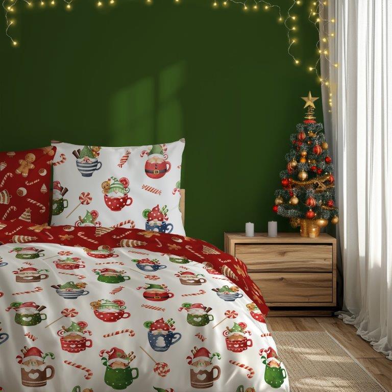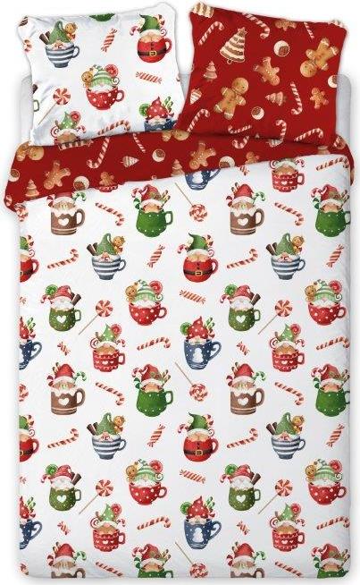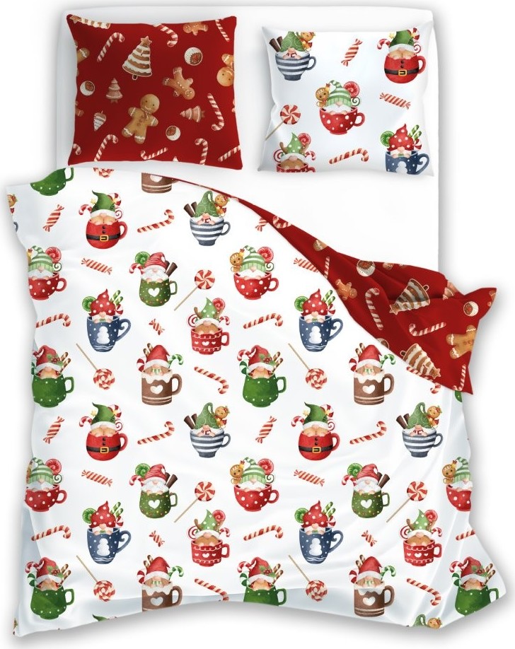 Bavlněné povlečení SCANDIC Skřítci a perníčky - bílé/červené - 140x200 cm