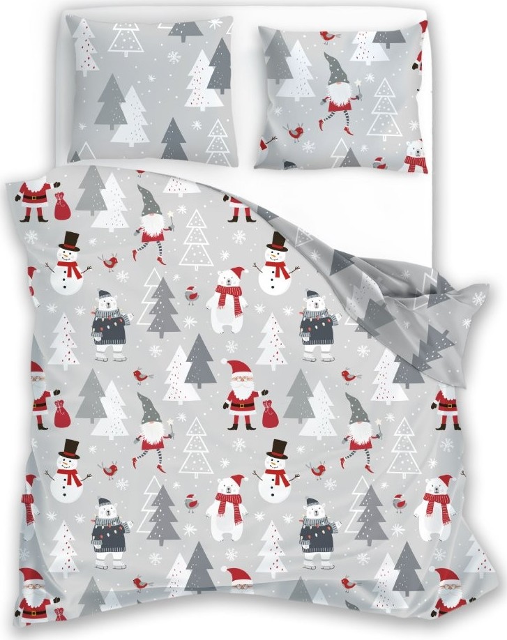 Bavlněné povlečení SCANDIC Sněhuláci a medvědi - šedé - 220x200 cm