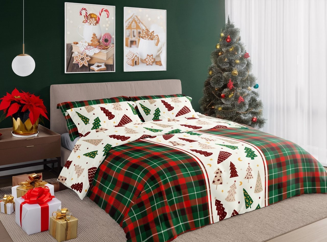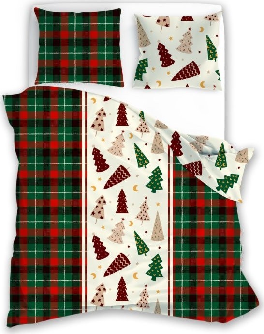 Bavlněné povlečení SCANDIC Stromečky - zelené/červené/bílé - 220x200 cm