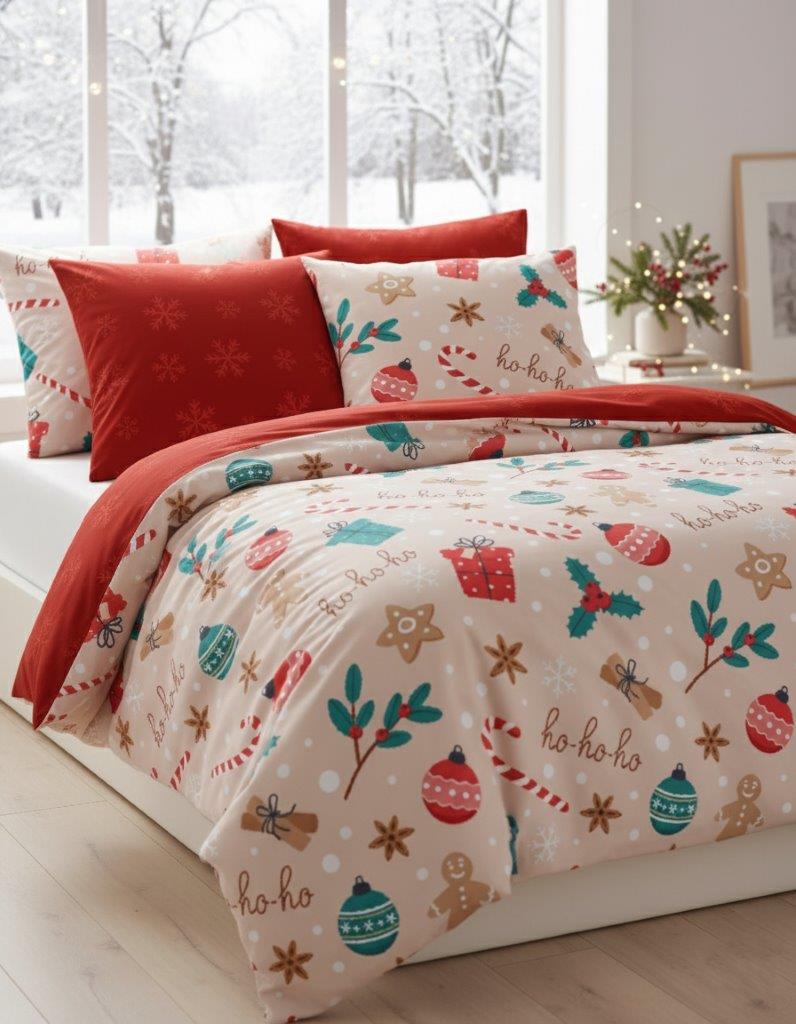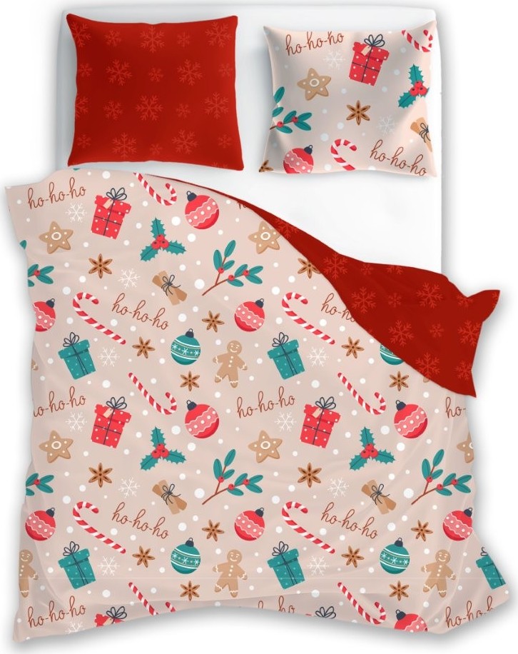 Bavlněné povlečení SCANDIC Vánoční motiv - béžové/červené - 220x200 cm