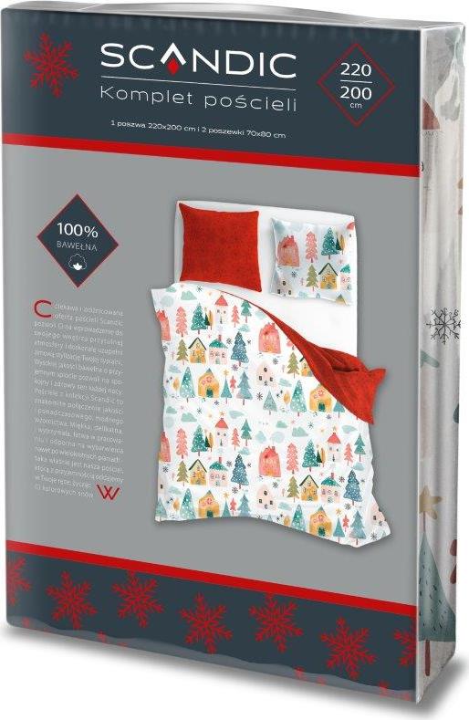 Bavlněné povlečení SCANDIC Zimní vesnička - bílé/červené - 220x200 cm