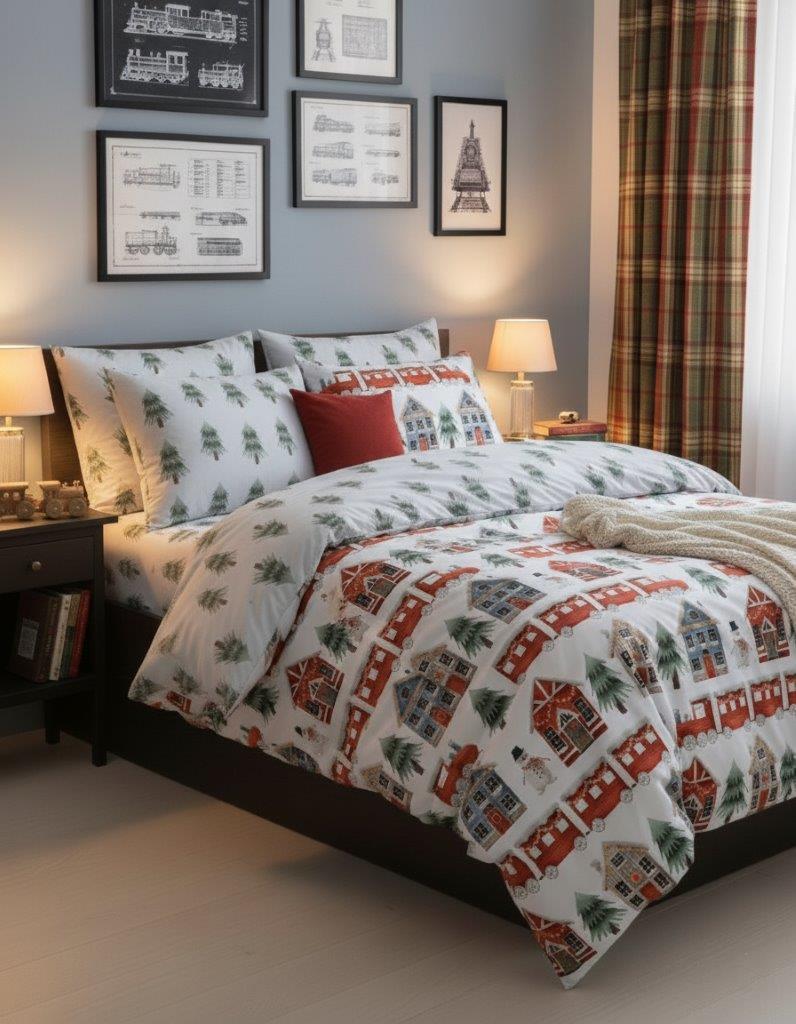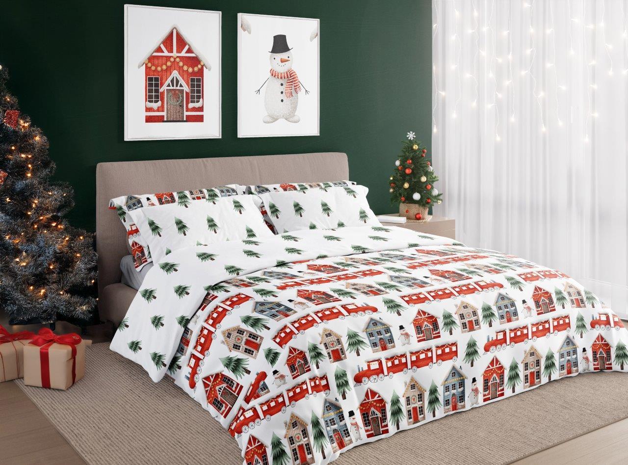Bavlněné povlečení SCANDIC Zimní vláček - bílé - 160x200 cm