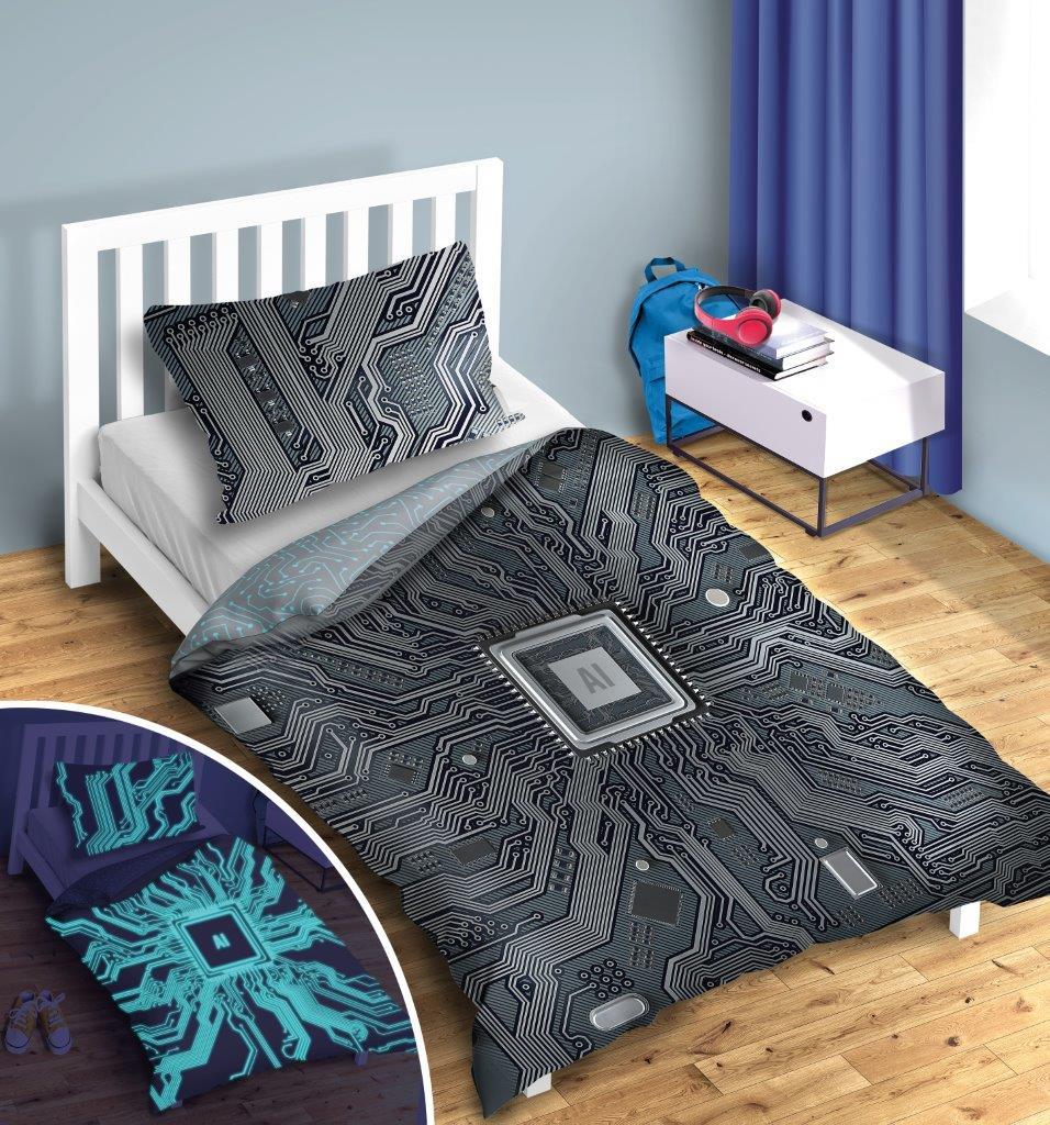 Bavlněné svítící povlečení YOUNG AI - 140x200 cm + 70x80 cm