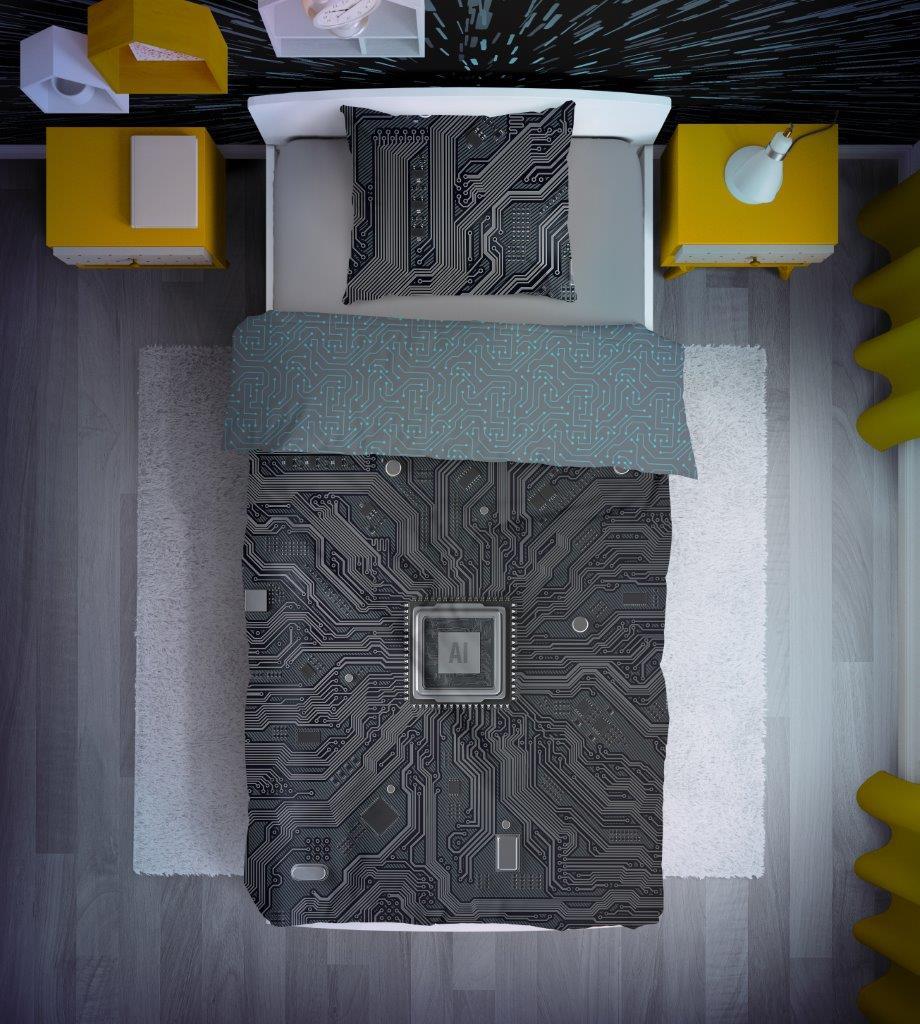 Tuto fantastickou sadu ložního prádla ocení každý fanoušek moderních technologií, zejména umělé inteligence! Je vyrobena ze 100% bavlny a vyznačuje se krásnou, barevnou grafikou s výrazným procesorem s umělou inteligencí. Děti pod tímto ložním prádlem s radostí usínají a noc strávená ve světě umělé inteligence je jistě nabije energií na další aktivní den! Navíc zářivé, syté barvy vydrží, takže sada bude zdobit pokojíčky těch nejmenších po mnoho let. Ložní prádlo je měkké na dotek a šetrné k citlivé dětské pokožce. Povlečení má praktické zapínání na zip. Sadu lze prát v pračce na 40 °C.