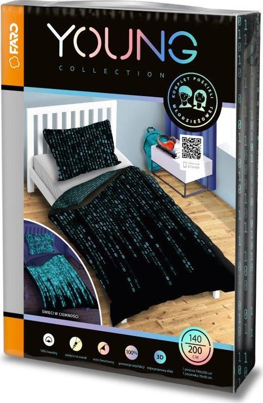 Bavlněné svítící povlečení YOUNG Matrix - 140x200 cm + 70x80 cm