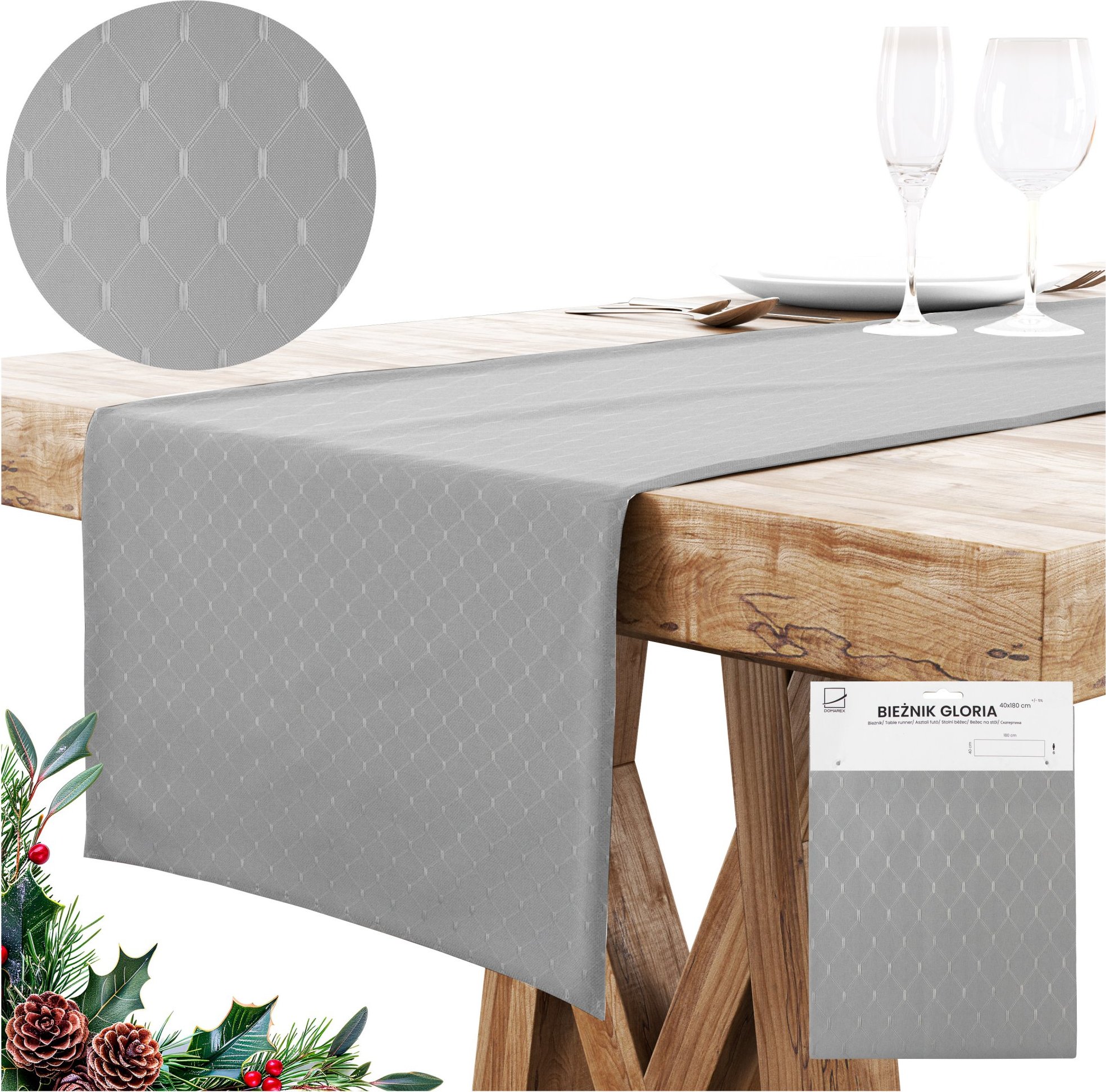 Série GLORIA je určena pro ty, kteří si cení stylu a odolnosti. Žakárová látka nejen krásně splývá na stole, ale také zajišťuje výjimečnou odolnost a snadnou údržbu.