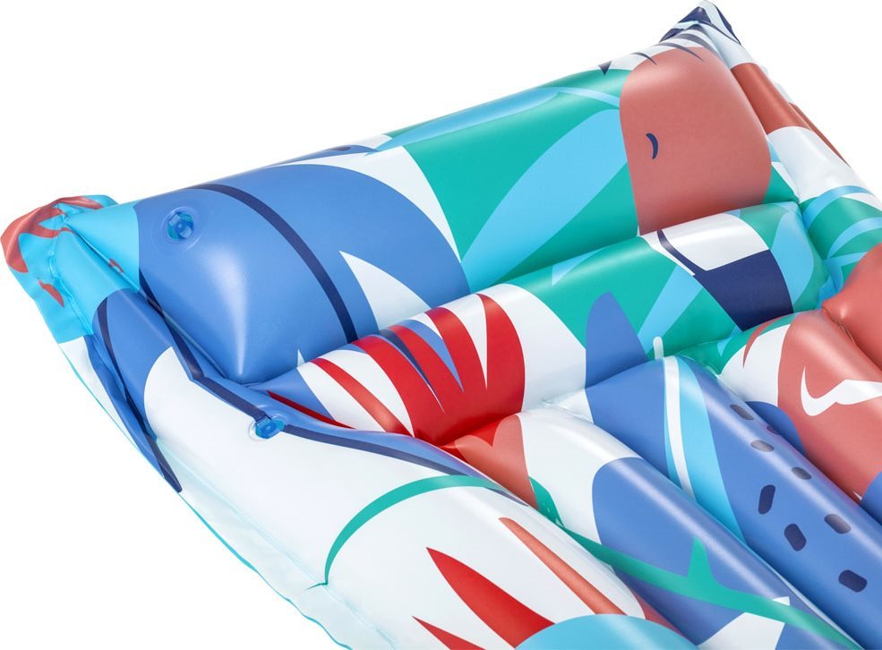 Nafukovací lehátko s barevným potiskem a se 2 komorami. Součástí balení je sada na lepení. Rozměry: 183 x 69 cm. Maximální nosnost 90 kg.Vlastnosti