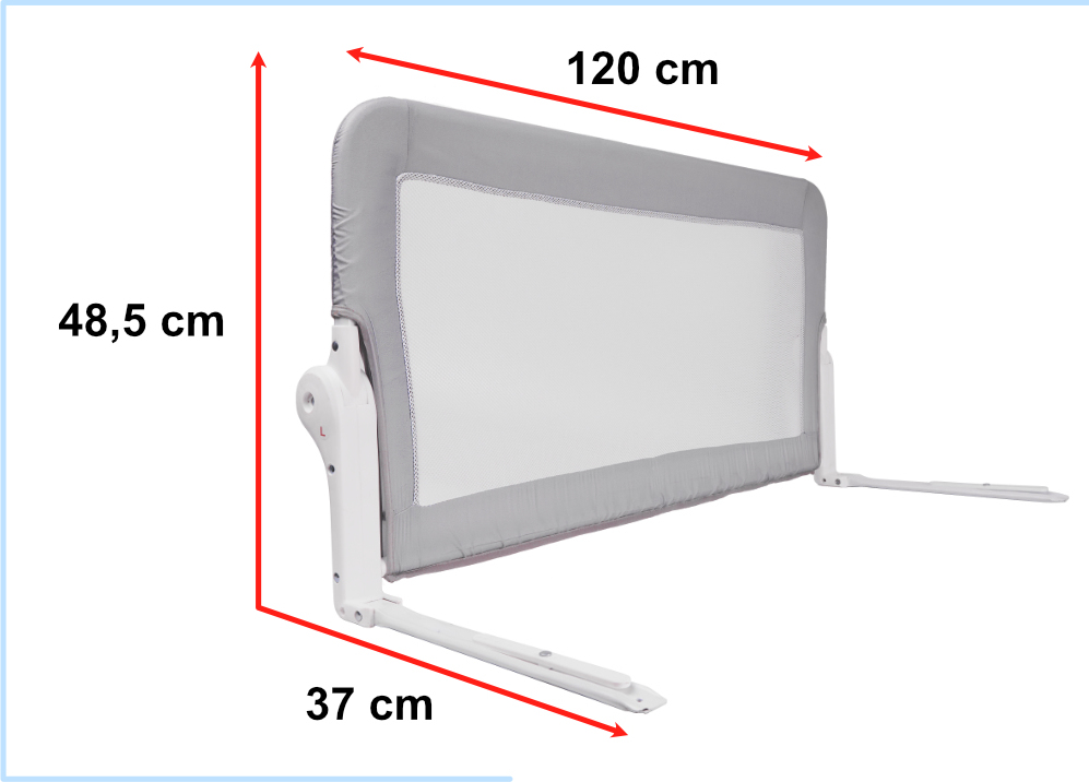 Praktická bezpečnostní zábrana do postele zajistí klidný a nerušený spánek, pokud sdílíte postel se svým dítětem nebo pokud mu chcete dopřát bezpečný spánek v jeho vlastní postýlce. Jednoduchý design zábrany se bez problémů hodí do jakéhokoli dekoru postele nebo ložnice. Montáž zábrany je neuvěřitelně jednoduchá! Začněte jejím sestavením vložením příslušných prvků rámu do otvorů v látkové síťované podšívce. Poté jednoduše zvedněte matraci postele a vložte pod ni vyčnívající základny zábrany! Zábrana je sklopná díky skládacím pantům. Stiskněte tlačítka na obou stranách a snadno složíte zábranu postele tak, aby nepřesahovala matraci!