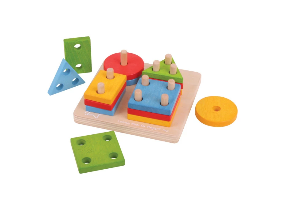 Bigjigs Baby Nasazování barevných tvarů na tyče