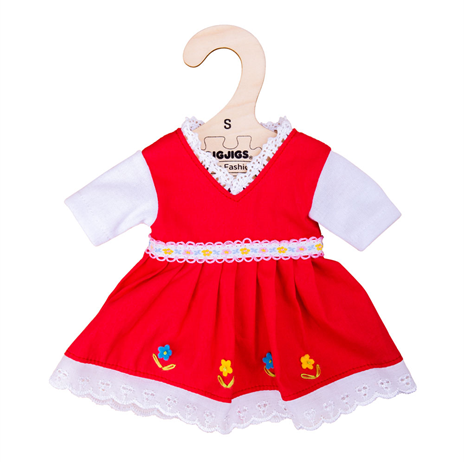 Bigjigs Toys Červené květinové šaty pro panenku 28 cm