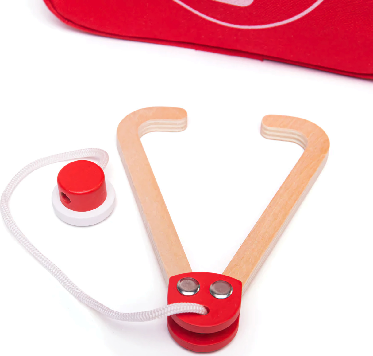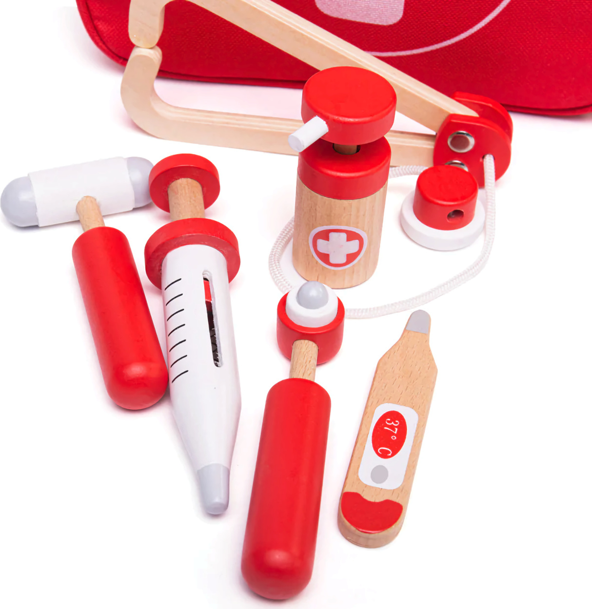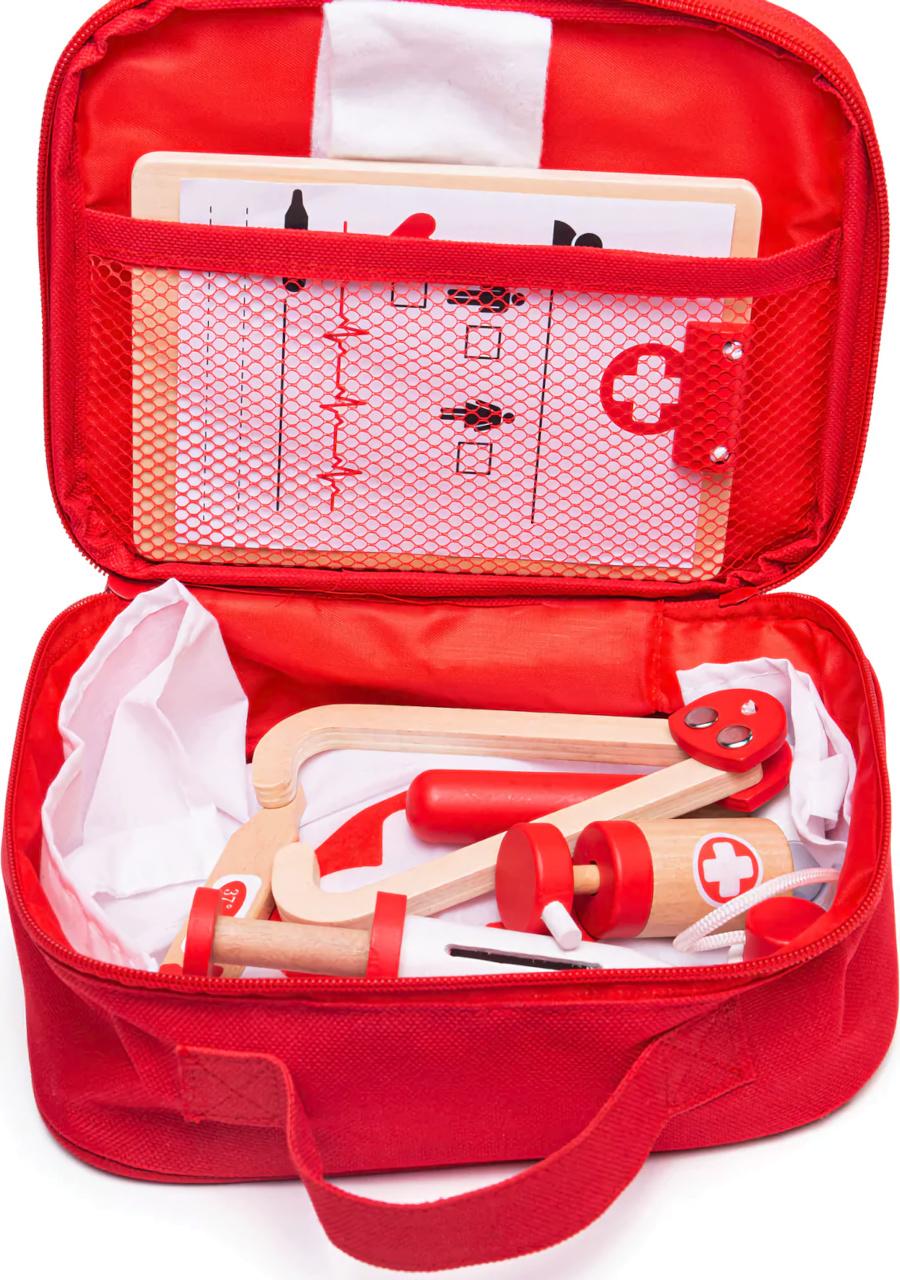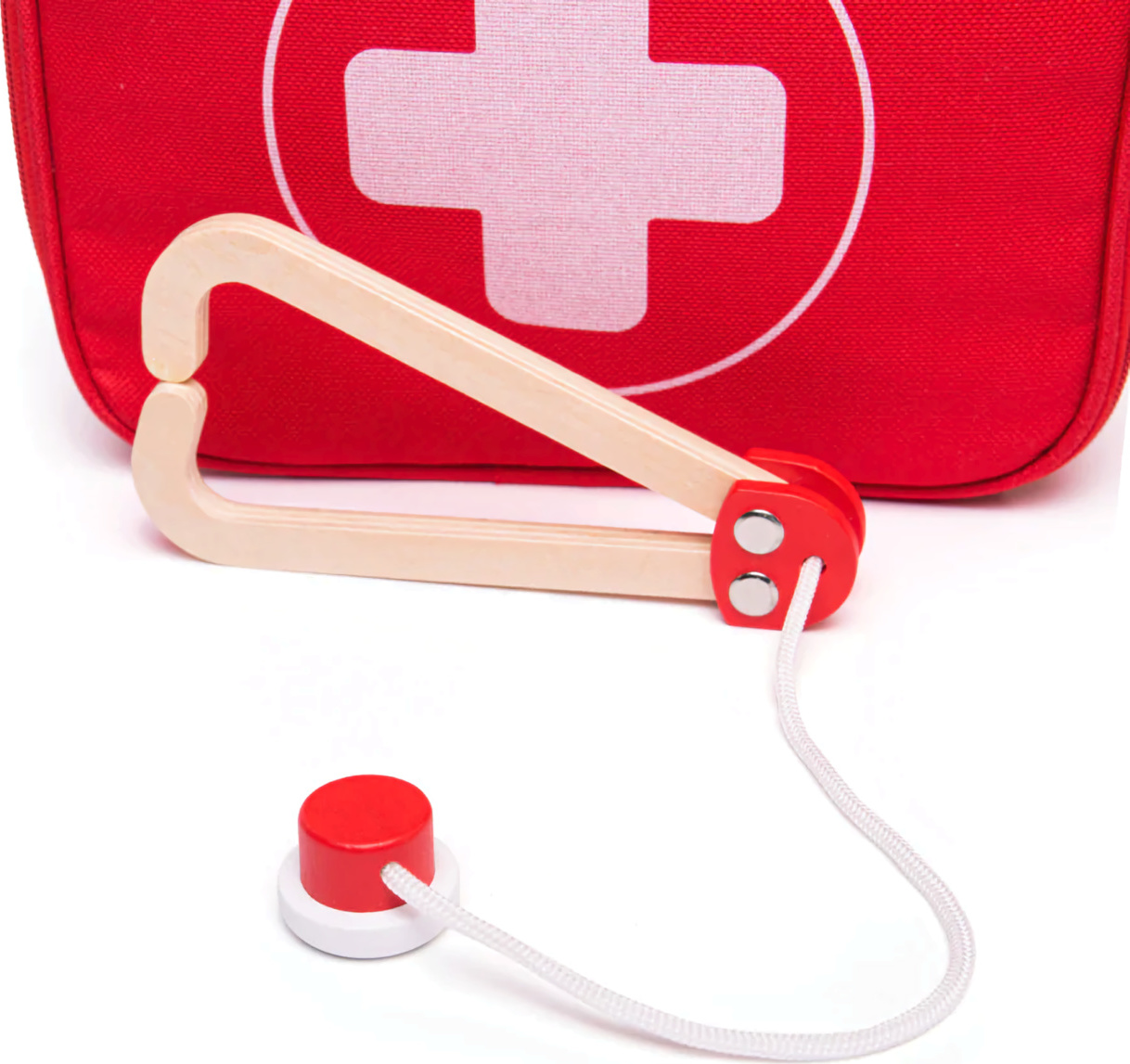 Praktická taška na přenášení dělá z této doktorské sady skvělého společníka na cesty. Skládá se z 10 hracích částí. Vyrobeno z vysoce kvalitních materiálů z odpovědných zdrojů. Vyhovuje současným evropským bezpečnostním normám.