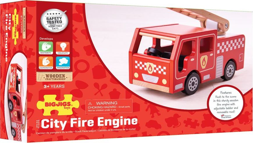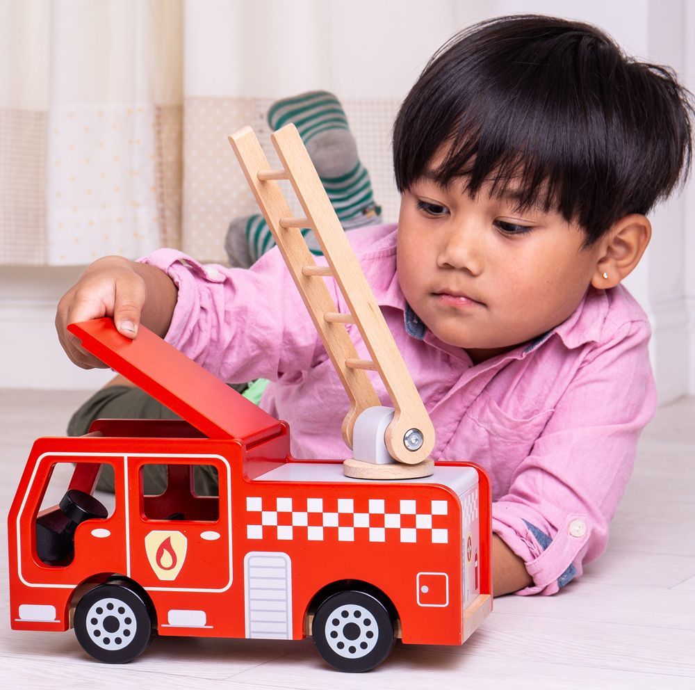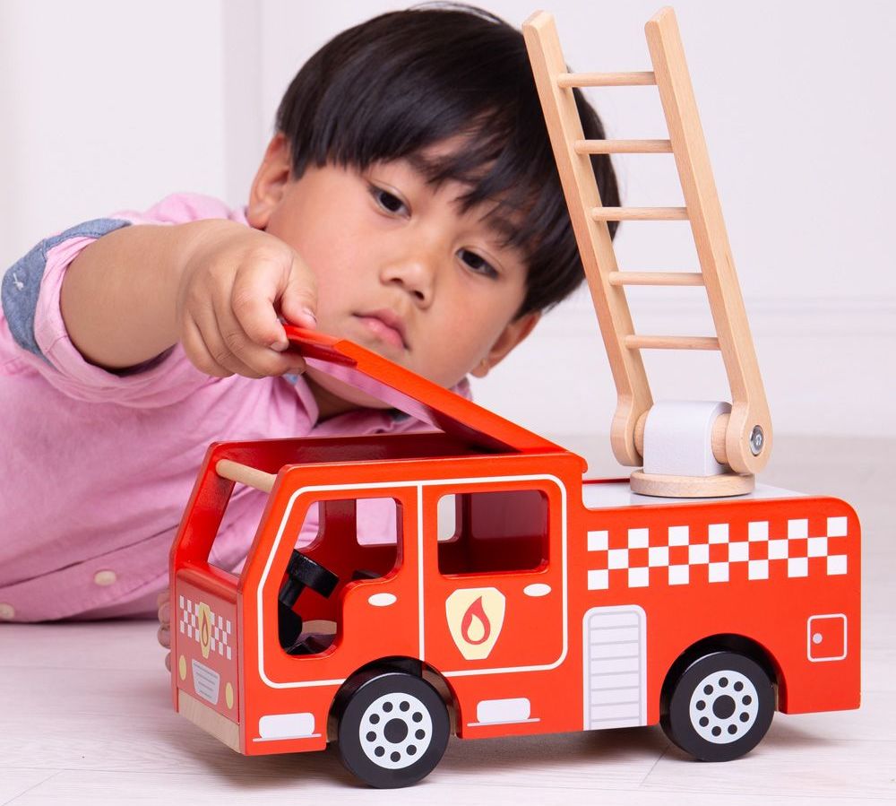 Rozviňte imaginativní hru s tímto nádherně detailním dřevěným hasičským autem. Toto krásně zpracované vozidlo je ideální pro každého začínajícího mladého hasiče a je připraveno vyrazit na místo požáru. Mladí hasiči a hasičky mohou zvedat a otáčet žebřík, aby dosáhli vysoko, hasili požáry nebo zachraňovali kočky ze stromů! Kompatibilní s postavičkami hasičů v naší nabídce (prodává se samostatně). Rozvíjí koordinaci ruka oko, jemnou motoriku a obratnost. Podporuje kreativní a nápaditou hru. Vyrobeno z vysoce kvalitních, zodpovědně získaných materiálů. Splňuje aktuální evropské bezpečnostní normy.