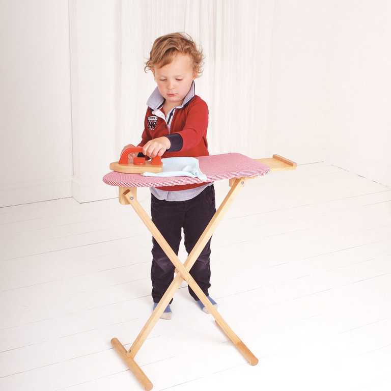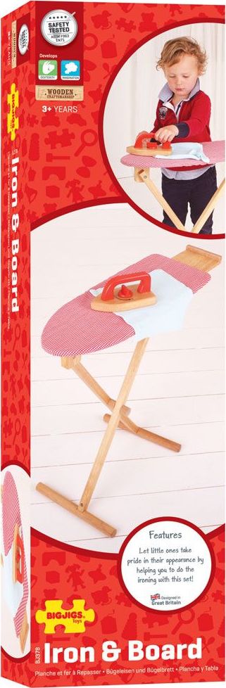 Vaši nejmenší budou jistě nadšení z tohoto jasného a robustního dřevěného žehlícího prkna a dřevěné žehličky. Ideální k žehlení oblečení pro panenky, nebo k pomáhání žehlení mamince či tatínkovi. Skvělý doplněk k našemu dřevěnému sortimentu pro domácnost. Vyrobeno z vysoce kvalitních, zodpovědně získaných materiálů. Splňuje aktuální evropské bezpečnostní normy.