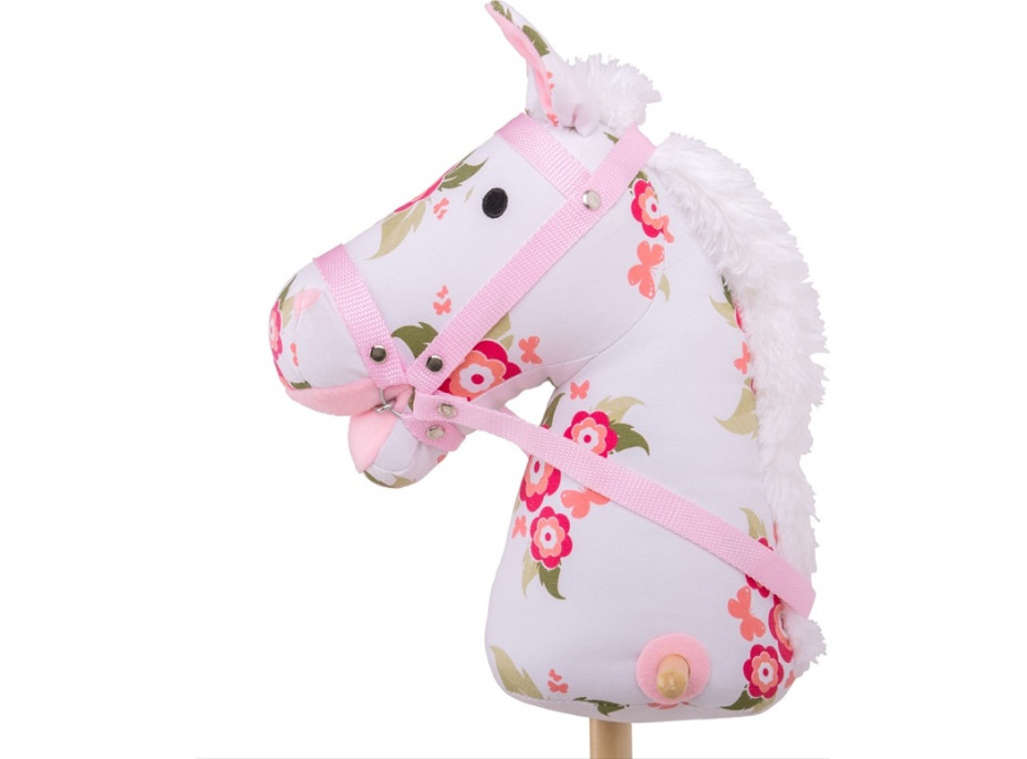 Cváláme, koníčku! Osedlejte si rozkošného koníčka s květinovým vzorem na hodiny aktivní zábavy. Koníci na tyči jsou skvělým způsobem, jak podpořit pohybovou aktivitu a cvičení, když malé nožičky cválají po herně nebo na zahradě. Tento rozkošný dřevěný koníček se vyznačuje měkkou plyšovou hlavou, nadýchanou hřívou, praktickými otěžemi, snadno uchopitelnými rukojeťmi, kolečky na konci tyče a pevnou konstrukcí. Lesklá dřevěná kolečka nezanechávají stopy na podlaze a kloužou po hladkém rovném povrchu.