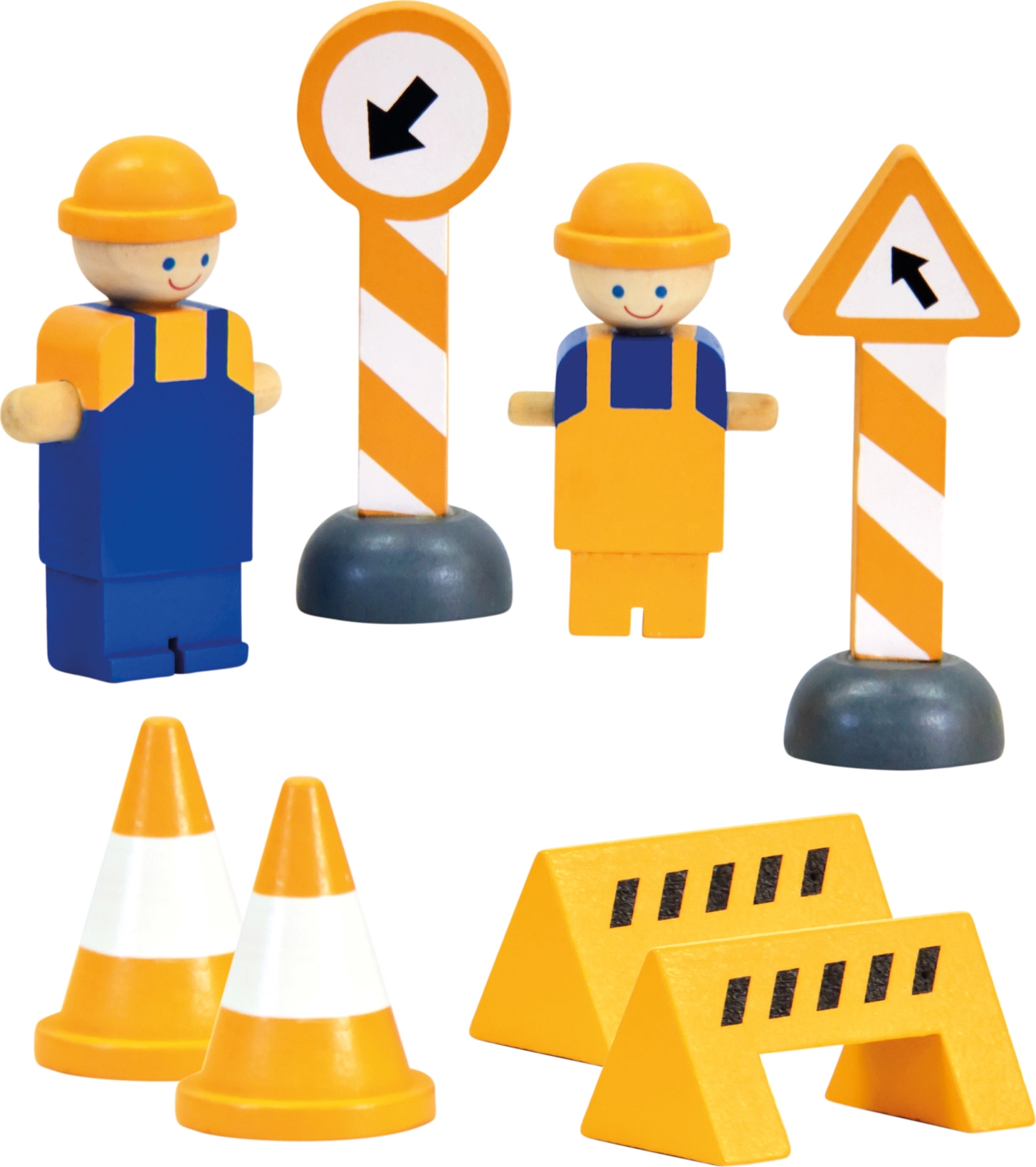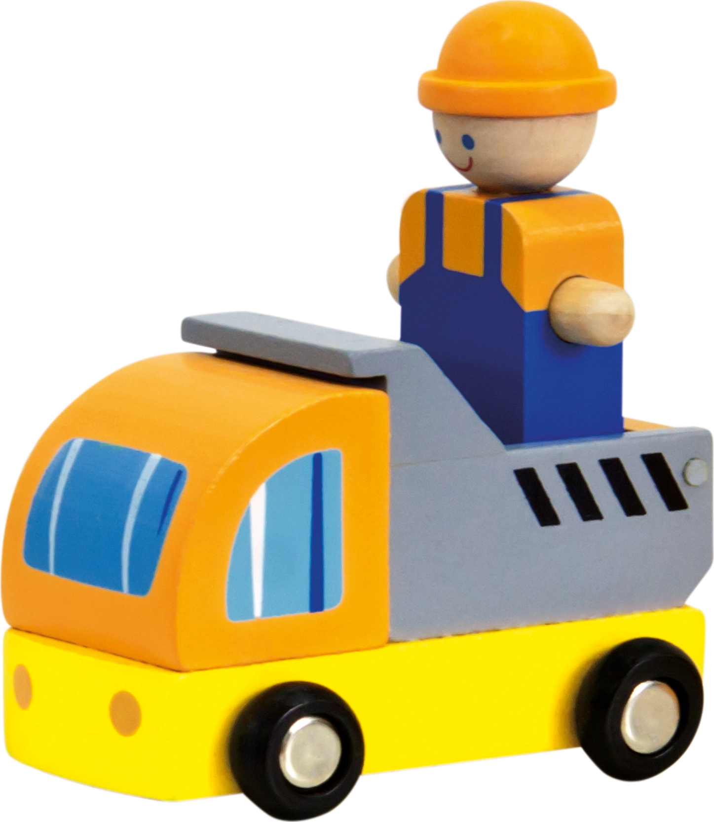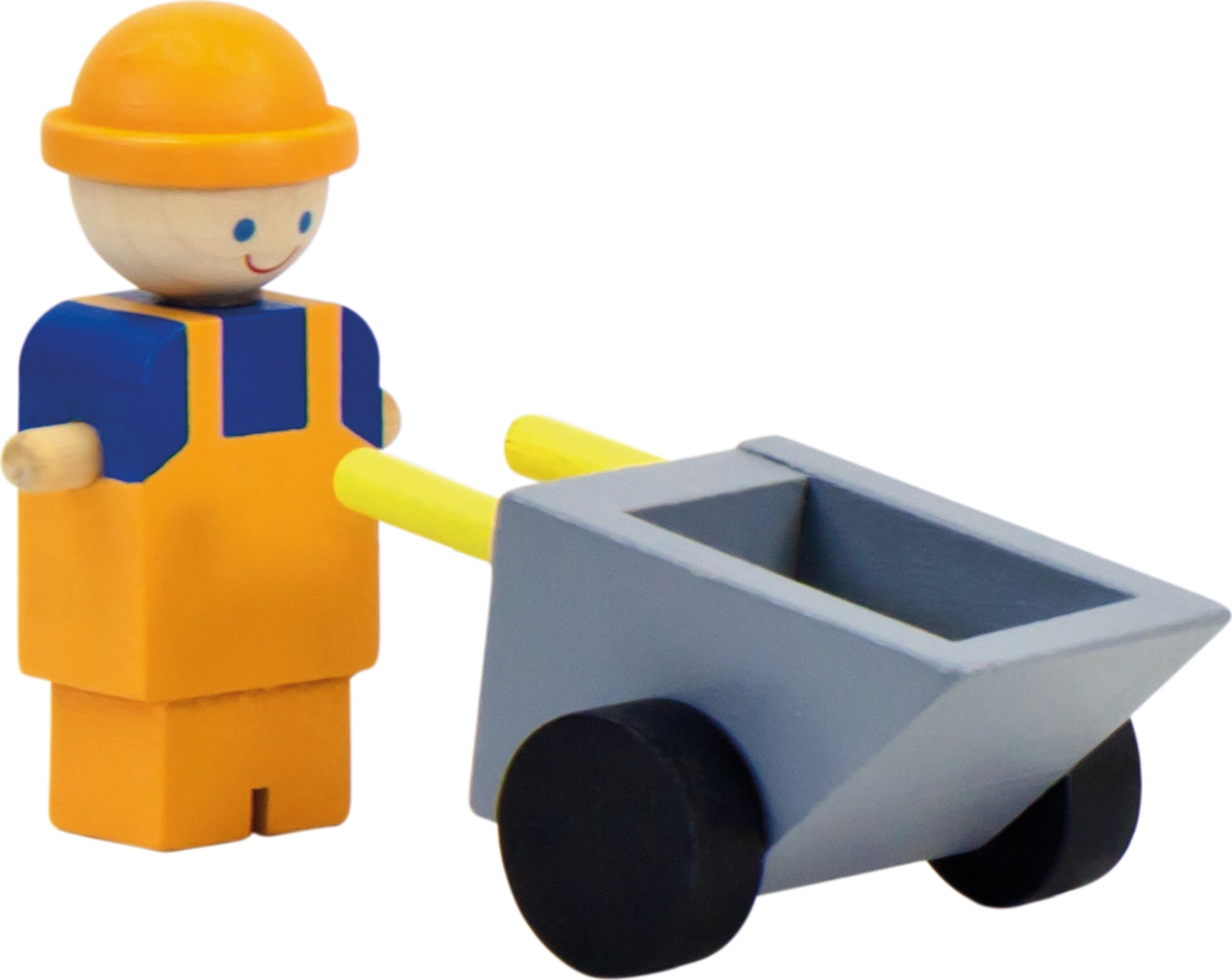 Souprava s dřevěným jeřábem, který sytými barvami přitáhne pozornost nadšených malých stavitelů. Břemenem lze různě manipulovat, jeřáb se otáčí kolem své osy, zaujme tak každé zvědavé dítě. Balení však obsahuje také nákladní autíčko a figurky stavebních dělníků i jejich náčiní. Hračka je robustní, vyrobena ze silné překližky a masivního dřeva.
