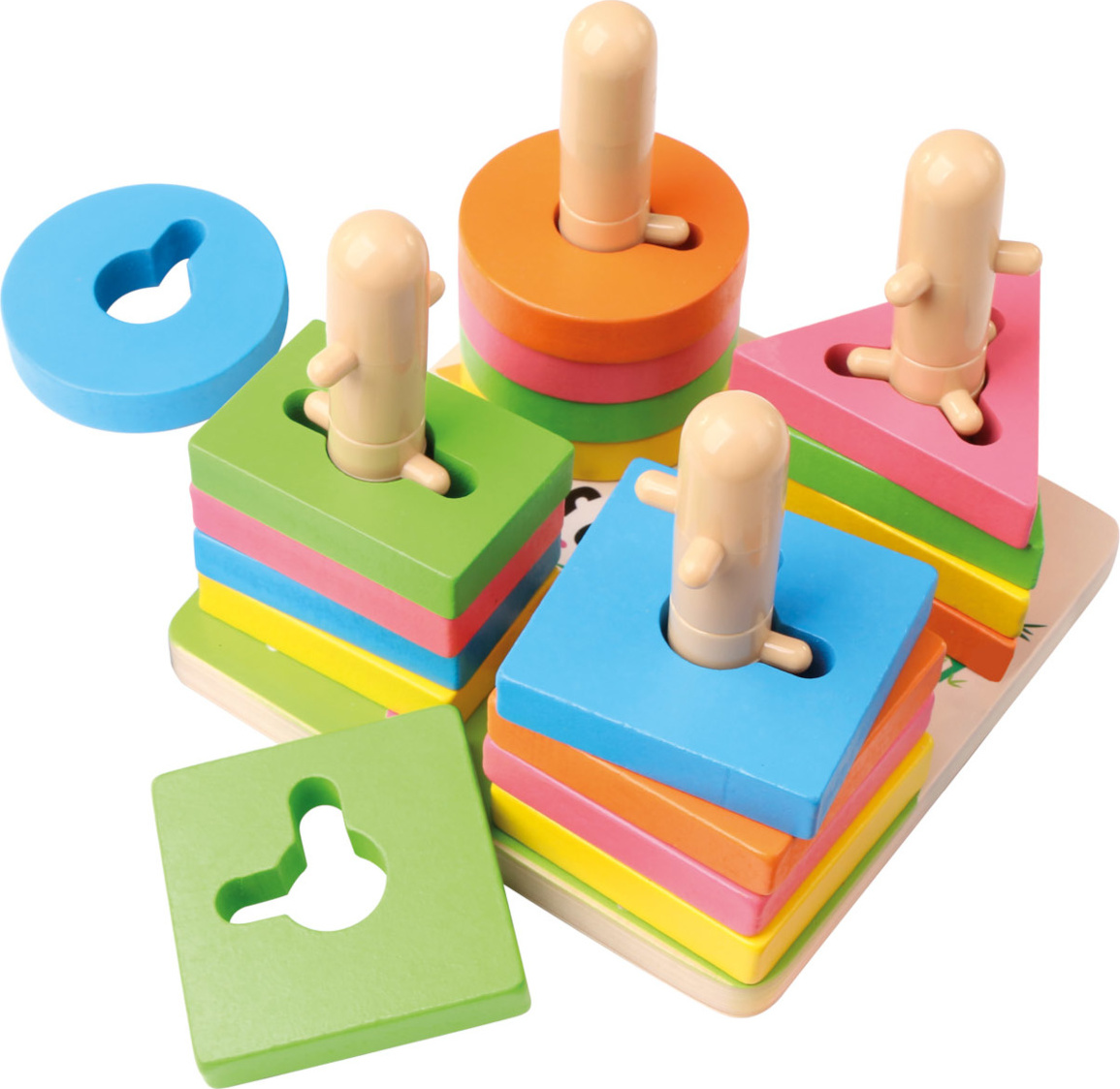 Hrou s jednoduchým hlavolamem mohou děti cvičit svou zručnost a zároveň se tříděním zábavně učit rozpoznávat tvary, nebo i barvy, kterými hračka snadno upoutá jejich pozornost. Odolné provedení z překližky a masivního dřeva zajistí dlouhou životnost.