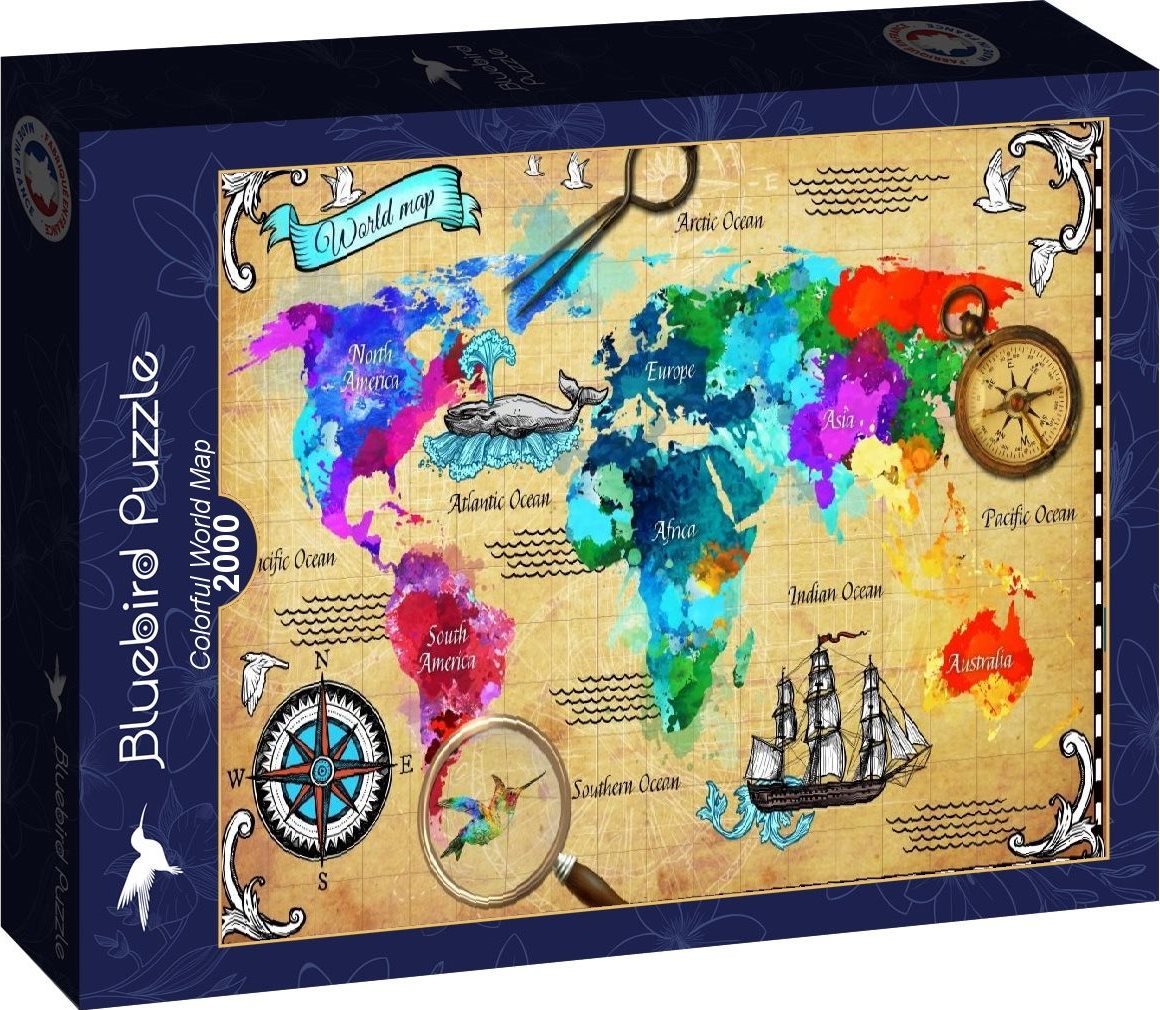 BLUEBIRD Puzzle Barevná mapa světa 2000 dílků