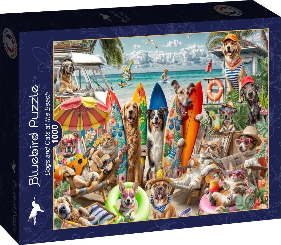BLUEBIRD Puzzle Psi a kočky na pláži 1000 dílků
