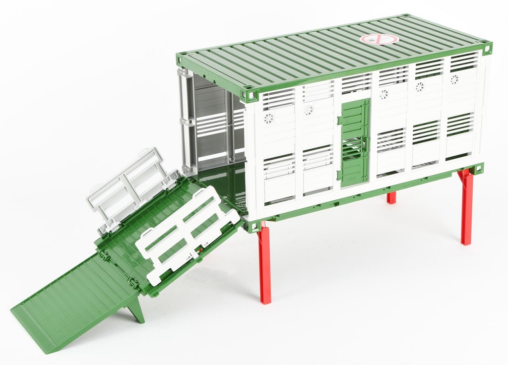 Tento originální přívěs na zvířata Bruder slouží jako výměnný kontejner pro přepravu hospodářských zvířat. Je plně kompatibilní s nákladními vozidly Bruder a rozšiřuje tak možnosti hry o ještě realističtější scénáře přepravy. Kontejner je realisticky zpracován s ventilačními otvory, otevíracími dveřmi a sklopnou nakládací rampou, což umožňuje autentickou přepravu hospodářských zvířat v rámci hry.Díky kvalitnímu plastu a preciznímu zpracování je zajištěna dlouhá životnost i při častém používání. Snadná montáž umožňuje rychlé nasazení na kompatibilní modely Bruder, takže váš kamion zůstane plně funkční a vizuálně kompletní.