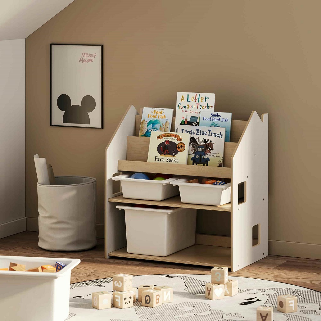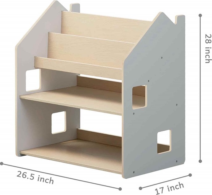 Tato police na hračky a knihy je navržena tak, aby podporovala dětskou samostatnost i pořádek. Díky přehlednému uspořádání si děti mohou samy vybírat a ukládat knihy i hračky, přičemž obálky knih jsou krásně viditelné a lákají ke čtení. Police nabízí čtyři prostorné regály a zadní úložný prostor vhodný pro knihy či hračky. Robustní a bezpečná konstrukce s pečlivě zaoblenými hranami je ošetřena lakem na vodní bázi. Díky jednoduchému, čistému designu krásně zapadne do každého interiéru. Součástí balení je samotná police, přehledný montážní návod i potřebné nářadí. Police je vyrobena z kvalitní lakované březové překližky a její stabilní konstrukce s hladce zaoblenými hranami zajišťuje maximální bezpečnost.