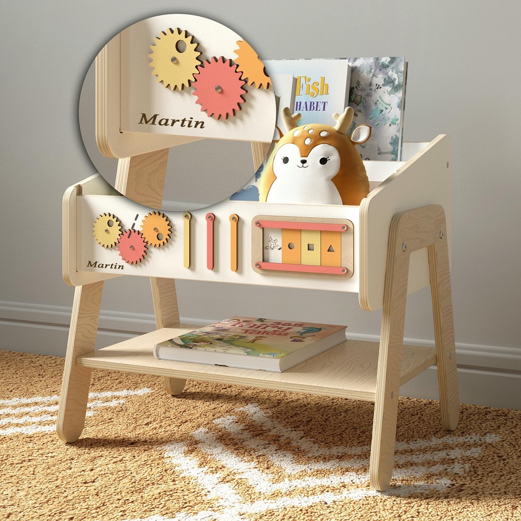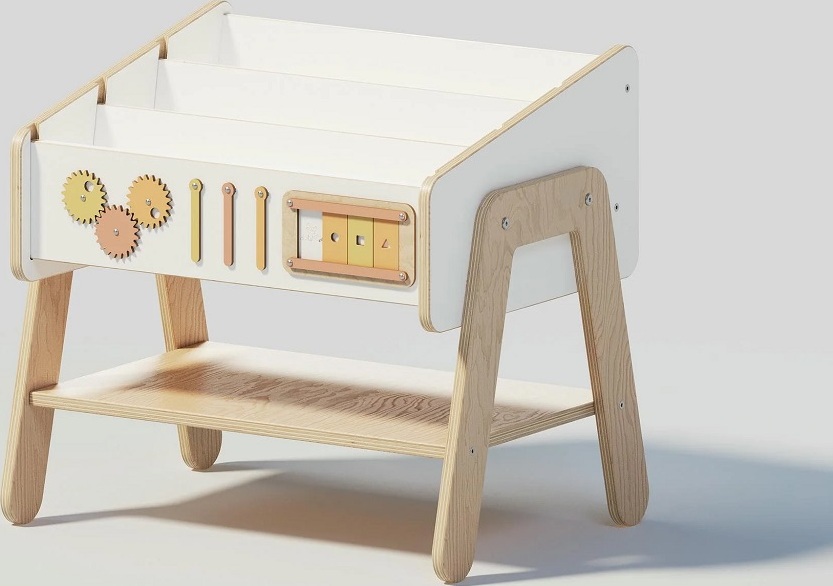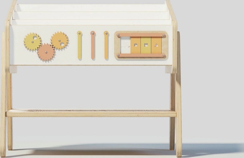 Police na knihy Lilu – jeden kus nábytku, tři možnosti využití. Kompaktní a všestranný doplněk, který se snadno přizpůsobí potřebám rostoucího dítěte. Police Lilu může sloužit jako přehledné místo pro oblíbené knížky, které tak děti lákají ke čtení, zároveň ji lze používat jako pohodlnou dětskou stoličku ke stolku Lilu a skvěle funguje také jako noční stolek, kam si dítě samo odloží lampičku, pití nebo oblíbenou hračku. Její stabilní konstrukce a jednoduchý vzhled umožňují umístění nejen do dětského pokoje, ale i do obývacího pokoje či předsíně. Praktické boční madlo usnadňuje dítěti přenášení a podporuje jeho samostatnost.Tento chytrý kousek nábytku ocení zejména rodiče, kteří potřebují funkční a prostorově úsporné řešení. Police Lilu v sobě spojuje tři praktické funkce, doplňuje ji interaktivní panel pro hru a rozvoj a je vyrobena z přírodních, bezpečných materiálů. Přirozené zbarvení, suky i jemné nepravidelnosti ve dřevě dělají z každého kusu originál.