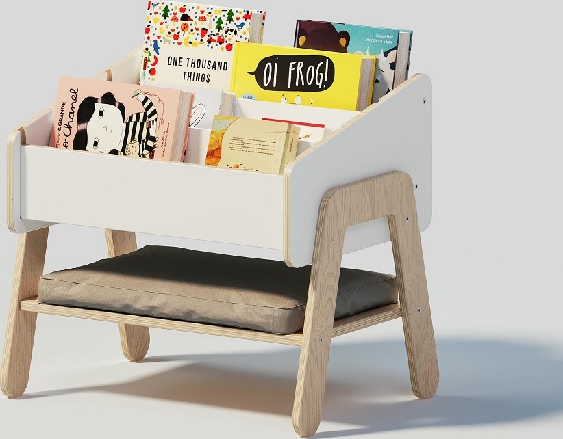 Balení obsahuje polici na knihy/sedátko. Knihy ani hračky nejsou součástí balení.