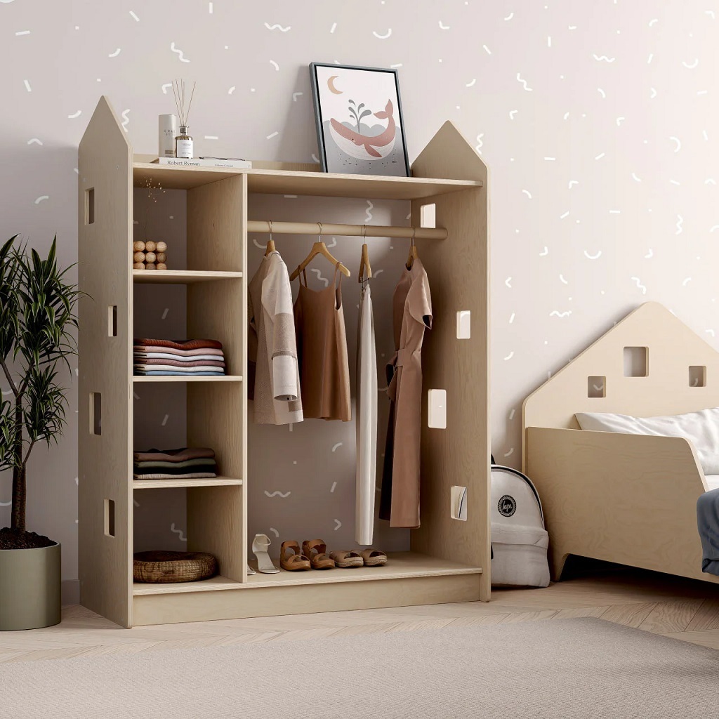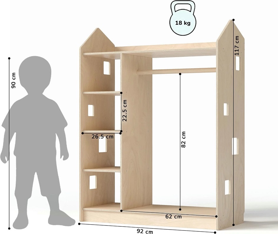 Objevte novinku BusyKids pro snadnou a hravou organizaci dětského pokoje – dětskou skříň ve tvaru domečku. Skvěle doplní oblíbené úložné police na hračky a knihy ze stejné kolekce a vnese do prostoru útulnou a hravou atmosféru. Skříň je navržena podle principů Montessori. Díky otevřenému přístupu k policím si děti snadno samy vybírají oblečení, udržují pořádek a postupně rozvíjejí samostatnost a zodpovědnost. Volbou skříně BusyKids podporujete nejen pořádek v pokoji, ale také kreativní rozvoj a samostatnost svého dítěte.