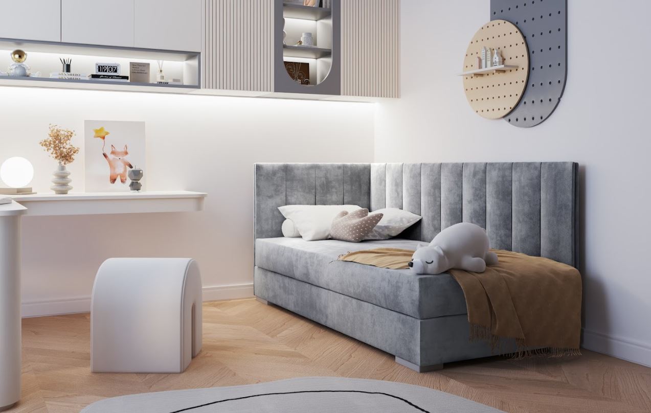 Čalouněná postel COIMBRA III s praktickým úložným prostorem na lůžkoviny má příjemný látkový povrch. Díky tomuto řešení je postel pohodlná na spaní a zároveň praktická pro každodenní použití. Látkové čalounění a vysoké čelo a boční čelo dodává posteli nejen elegantní nádech, ale zároveň chrání před chladem od zdi. Rozměry spací plochy 200x90 cm jsou vhodné pro jednu osobu, takže je tato postel ideální do malých ložnic či pokojů nebo pro lidi, kteří potřebují místo na spaní, ale nemají v místnosti mnoho místa. Látkový potah matrace poskytuje při spánku větší pohodlí. Postel dodáváme s pěnovou matrací nebo pružinovou bonelovou matrací s výškou 14 cm v pravém nebo levém provedení.