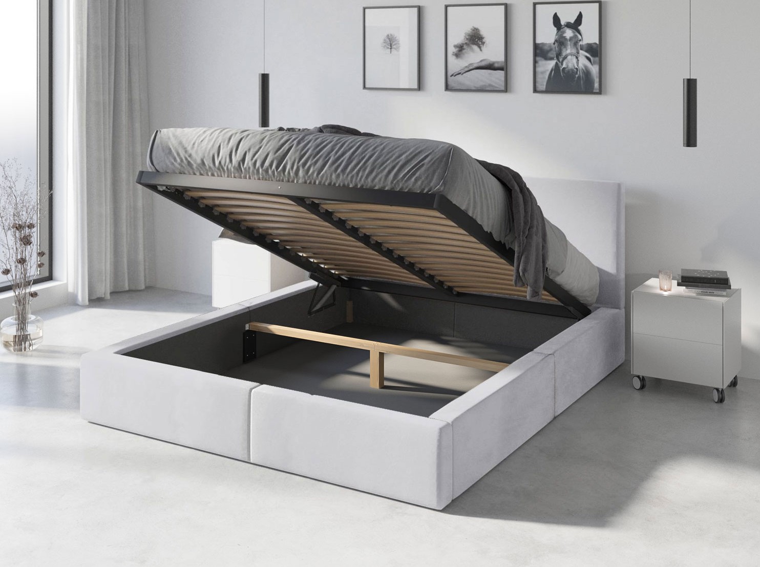 Čalouněná postel HILTON s úložným prostorem - 200x120 cm - bílá
