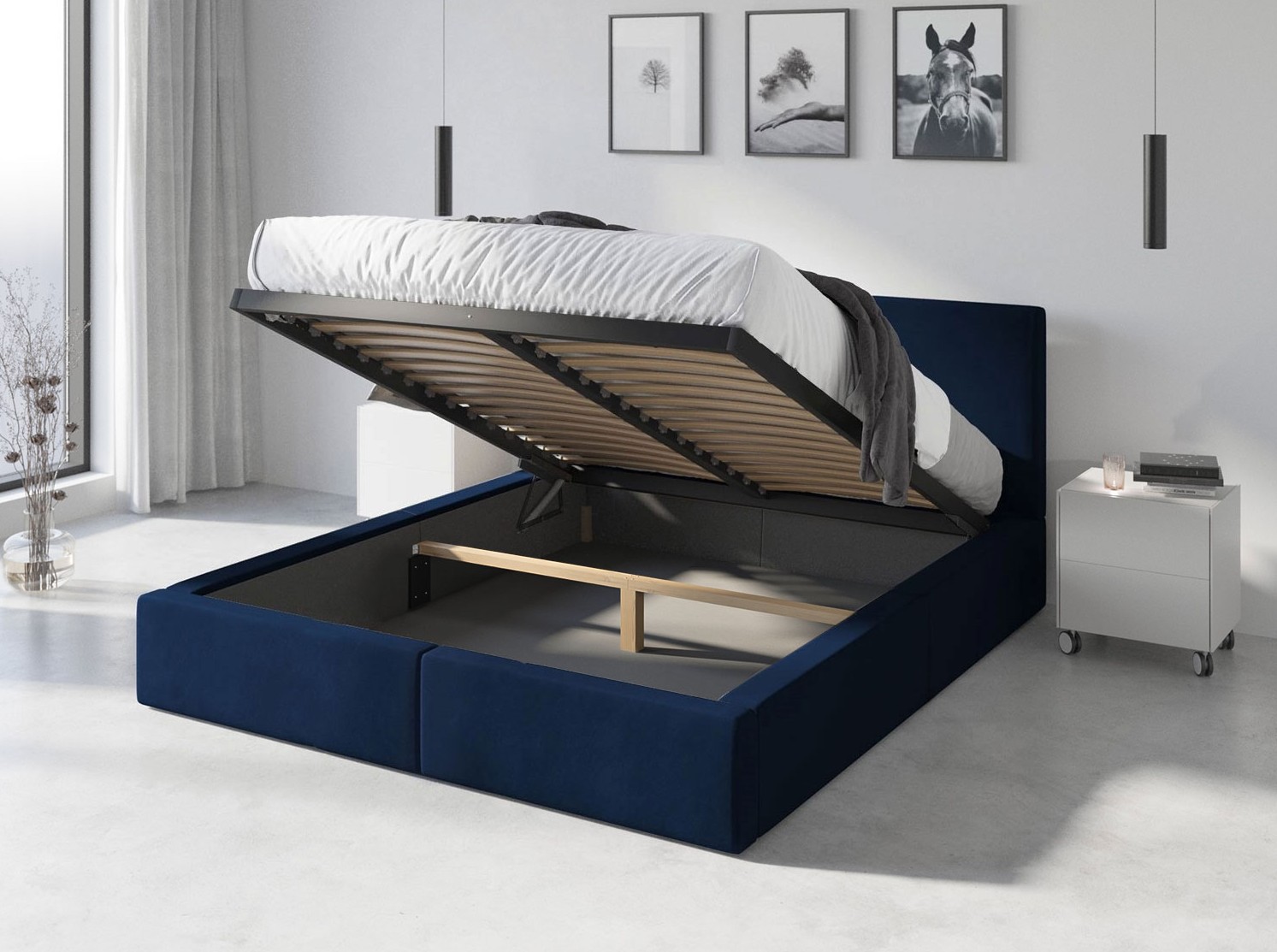 Čalouněná postel HILTON s úložným prostorem - 200x120 cm - tmavě modrá
