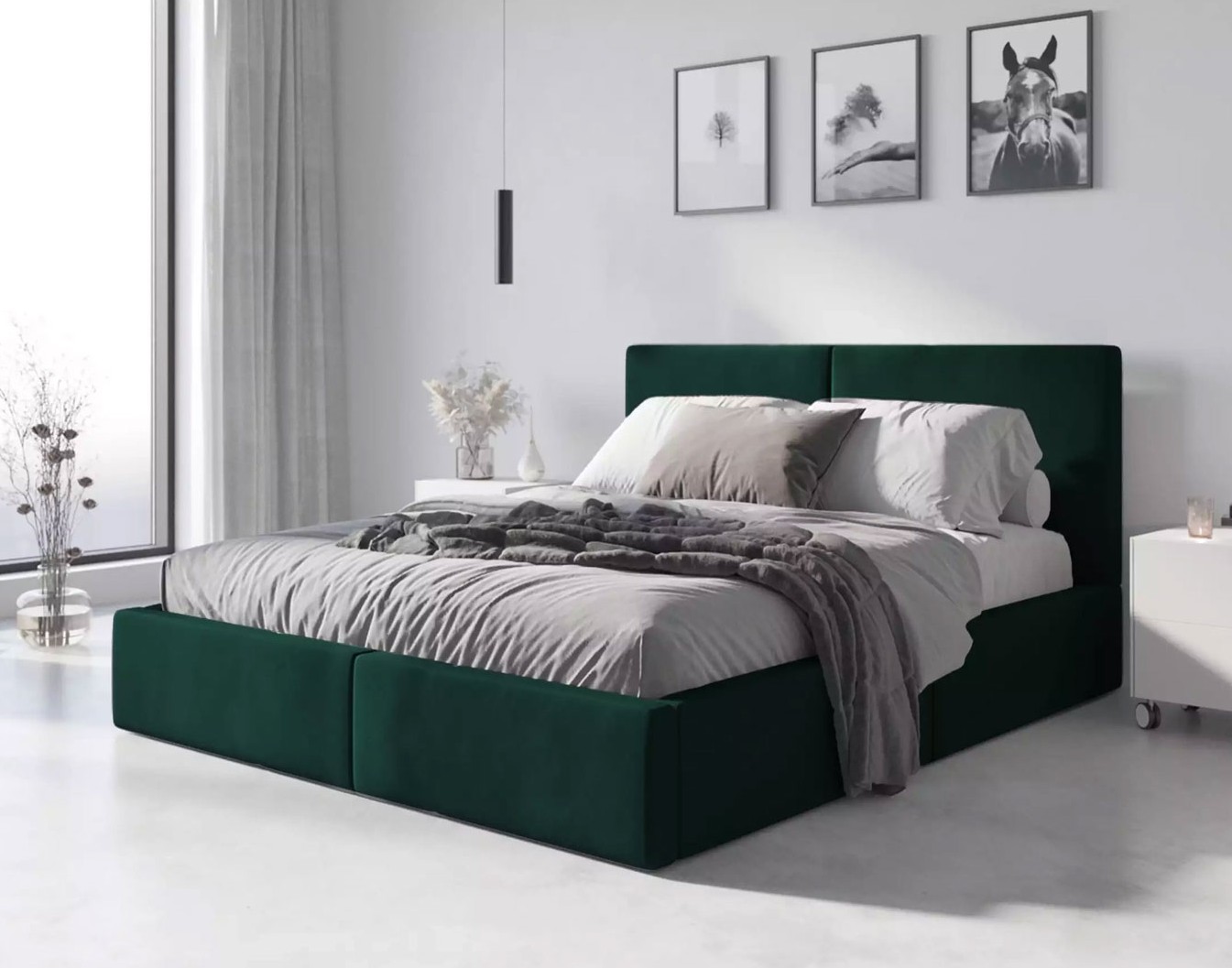 Čalouněná postel HILTON s úložným prostorem - 200x120 cm - tmavě zelená