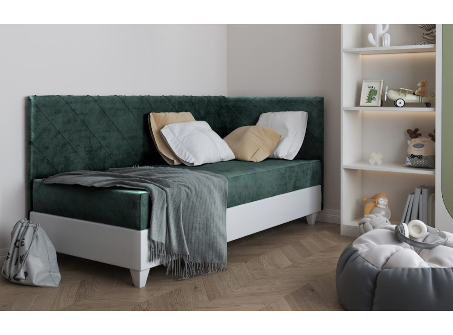 Čalouněná postel LAGOS III s praktickým úložným prostorem na lůžkoviny má příjemný látkový povrch. Díky tomuto řešení je postel pohodlná na spaní a zároveň praktická pro každodenní použití. Látkové čalounění a vysoké čelo a boční čelo dodává posteli nejen elegantní nádech, ale zároveň chrání před chladem od zdi. Úložný prostor je potažen ekokůží v bílé barvě. Rozměry spací plochy 200x90 cm jsou vhodné pro jednu osobu, takže je tato postel ideální do malých ložnic či pokojů nebo pro lidi, kteří potřebují místo na spaní, ale nemají v místnosti mnoho místa. Látkový potah matrace poskytuje při spánku větší pohodlí. Postel dodáváme s pěnovou matrací nebo pružinovou bonelovou matrací s výškou 14 cm v pravém nebo levém provedení.