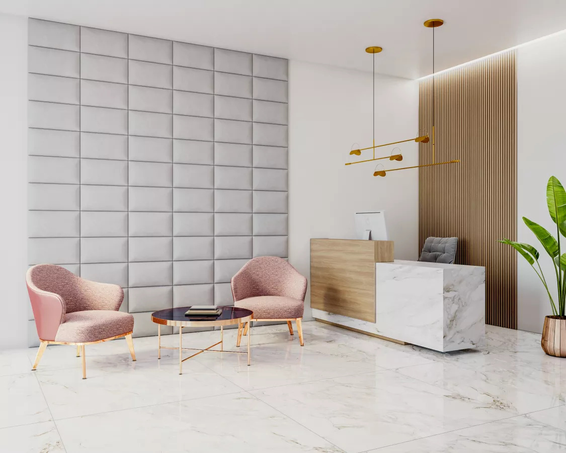 Čalouněný panel je vyroben z kvalitní HDF desky, která nabízí snadnou montáž na zeď pomocí lepidla, měkké polyesterové výplně a kvalitního, velmi odolného potahu Trinity. Potah je na dotek příjemný a snadno se čistí.