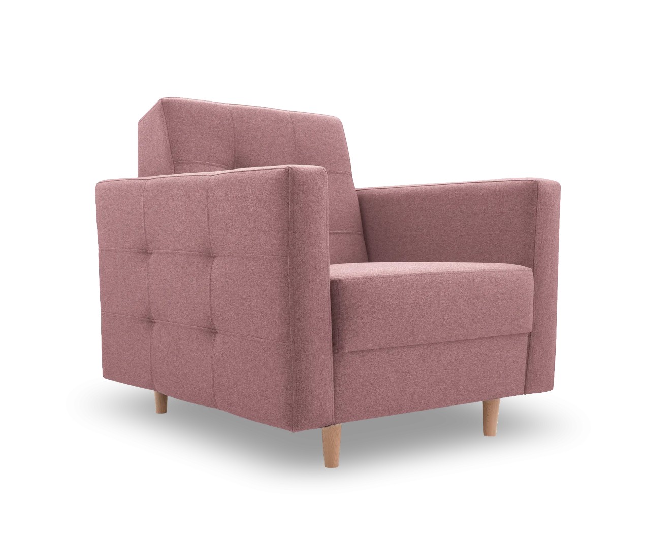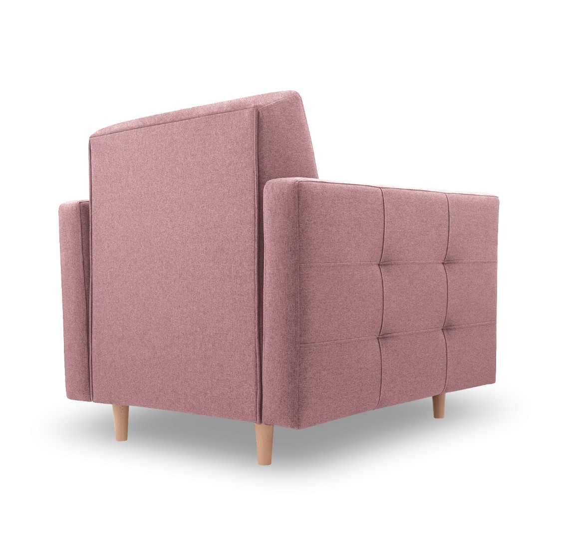 Křeslo TERST skandinávského stylu, která se hodí do moderně zařízeného interiéru. Charakteristickým znakem pohovky jsou dřevěné nohy a prošívaní na opěradle a bocích.