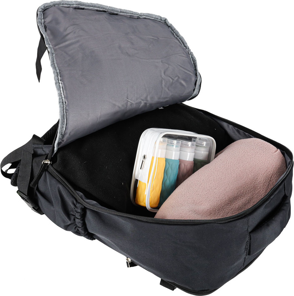 Pohodlný a sbalitelný turistický batoh s množstvím kapes pro všestranné využití. Má mnoho vymožeností, které zvyšují pohodlí při cestování a poskytují vám naprostou volnost pohybu. Je vhodný jak na krátké víkendové výlety, tak na dlouhé dovolené. Díky praktickým vlastnostem lze batoh využívat i každodenně a je ideální pro každodenní nákupy. Rozšiřitelná spodní přihrádka umožňuje optimálně uspořádat obsah zavazadla. Široké ramenní popruhy se síťovinou zajišťují, že batoh nezatěžuje páteř. Čtyři kompresní popruhy umožňují batoh stlačit natolik těsně, aby v zavazadlovém prostoru nebo na polici ve vlaku zabíral jen velmi málo místa.