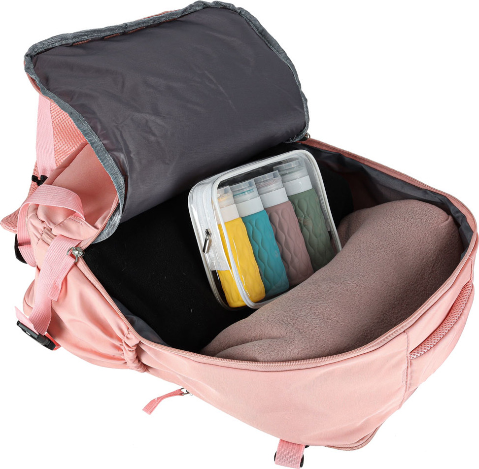 Pohodlný a sbalitelný turistický batoh s množstvím kapes pro všestranné využití. Má mnoho vymožeností, které zvyšují pohodlí při cestování a poskytují vám naprostou volnost pohybu. Je vhodný jak na krátké víkendové výlety, tak na dlouhé dovolené. Díky praktickým vlastnostem lze batoh využívat i každodenně a je ideální pro každodenní nákupy. Rozšiřitelná spodní přihrádka umožňuje optimálně uspořádat obsah zavazadla. Široké ramenní popruhy se síťovinou zajišťují, že batoh nezatěžuje páteř. Čtyři kompresní popruhy umožňují batoh stlačit natolik těsně, aby v zavazadlovém prostoru nebo na polici ve vlaku zabíral jen velmi málo místa.