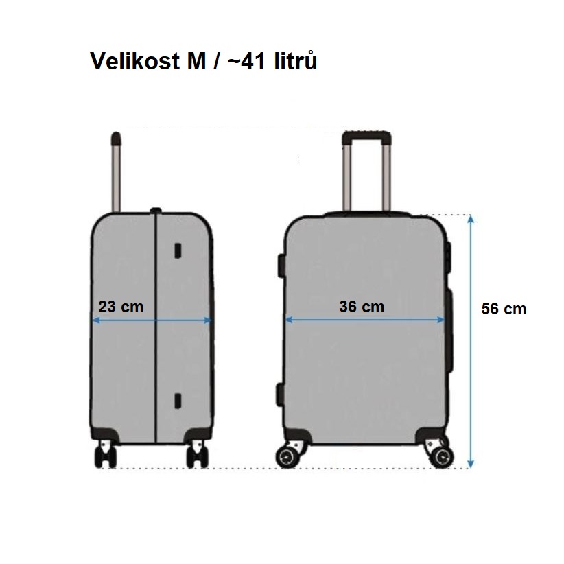 Jako kabinové zavazadlo lze u kufrů v naší nabídce označit velikost S. Jelikož se ale přepravní podmínky leteckých společností neshodují, doporučujeme včasné ověření povoleného rozměru u konkrétní společnosti, jejíž služby máte v plánu využít.