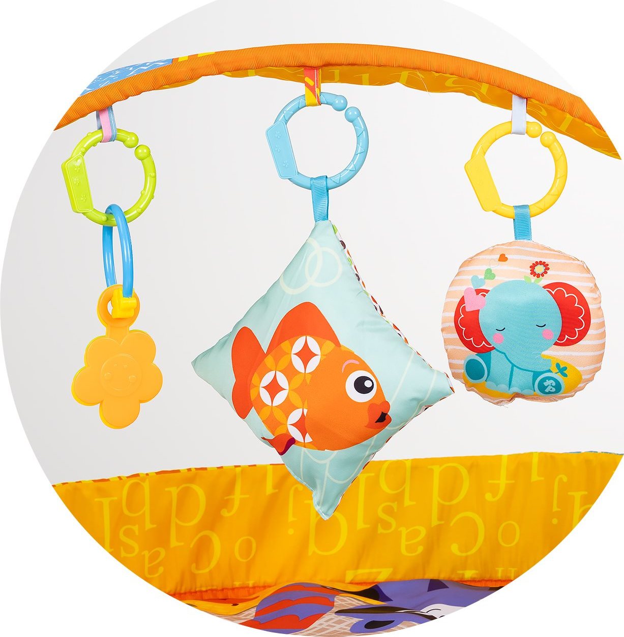 - měkká podložka s veselým designem a zářivými barvami, které upoutají pozornost dítěte