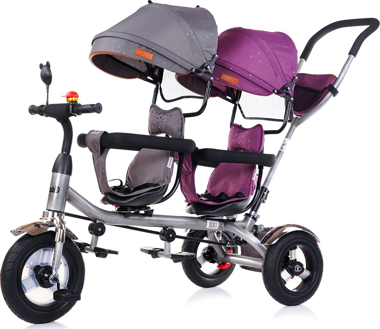 CHIPOLINO Tříkolka pro dvojčata 2Play Liliac,Platinum